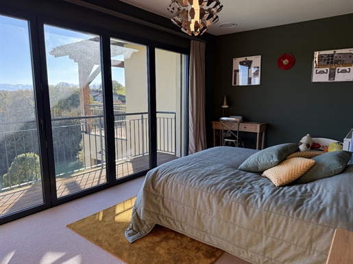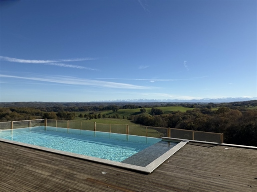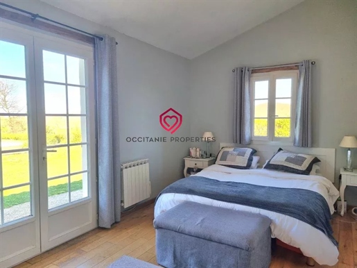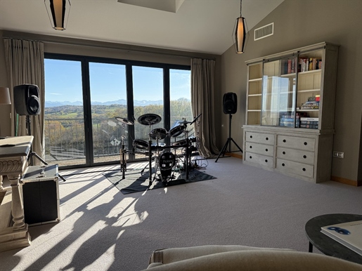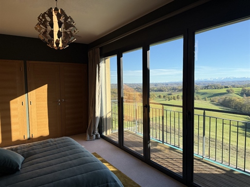 Nichée sur une crête dans un coin paisible du Gers, cette maison baignée de lumière bénéficie de vues spectaculaires sur la campagne vallonnée et les Pyrénées, avec de magnifiques levers et couchers de soleil.