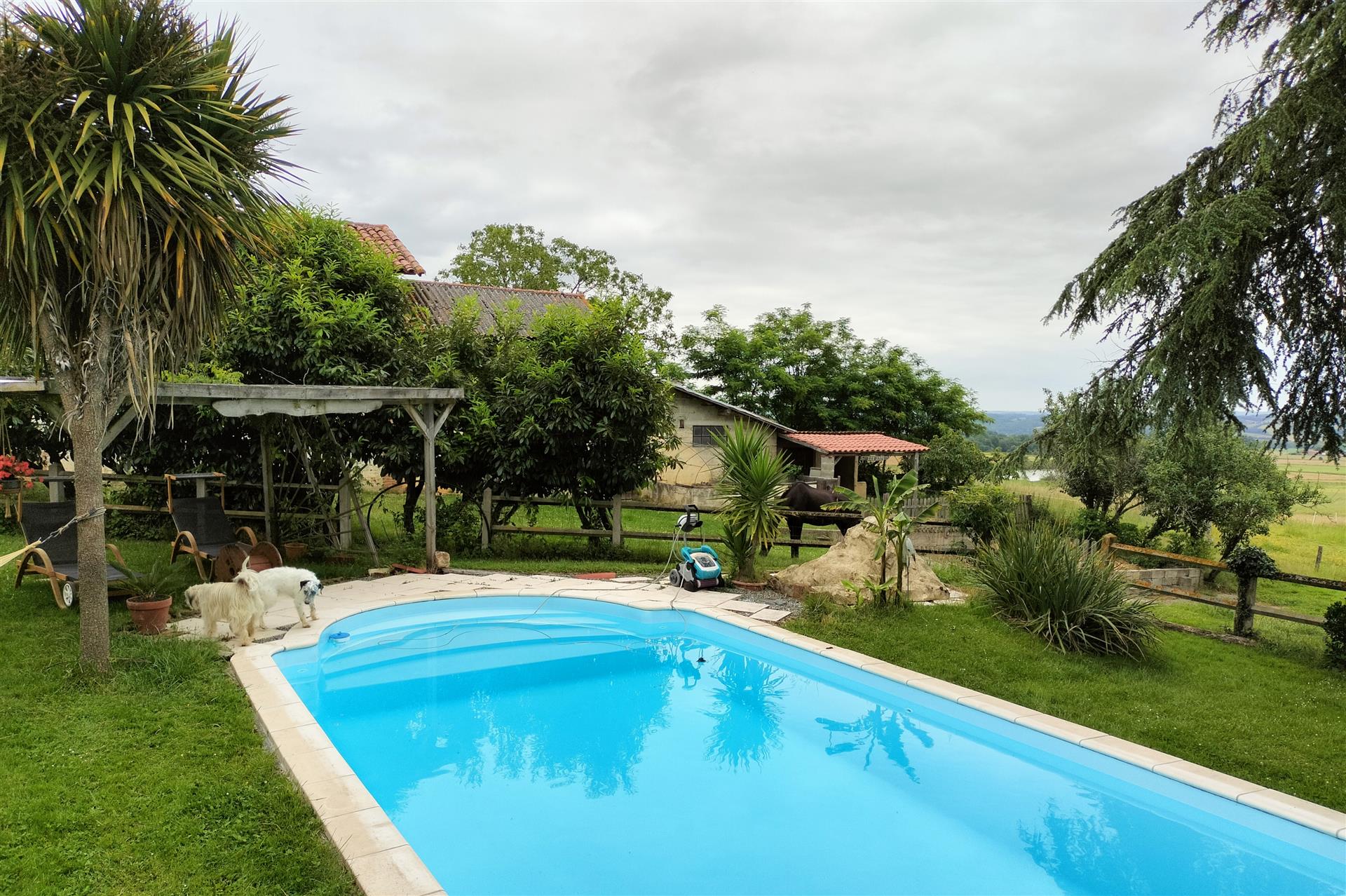 La piscine (12m x 6m) nécessite un nouveau liner (devis disponible), offrant une belle opportunité d'embellissement.