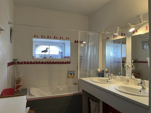 Le gîte (110m²) tout confort pour six personnes, comprenant au rez-de-chaussée de plein pied : entrée, wc, salle d'eau avec wc, cuisine aménagée et équipée donnant sur le séjour, trois chambres dont deux communicantes par une salle d'eau supplémentaire. Accès au jardin et à l'espace barbecue. Chauffage électrique, isolation performante. Revenu annuel : 16 000€ environ.