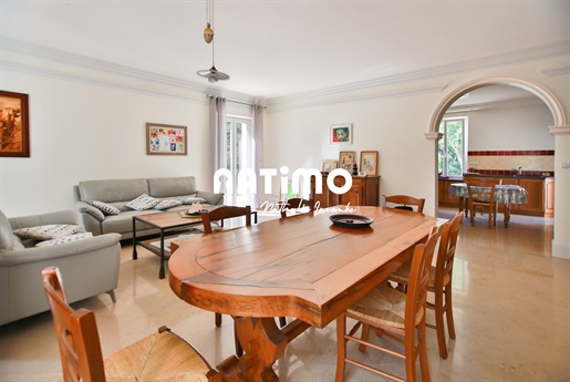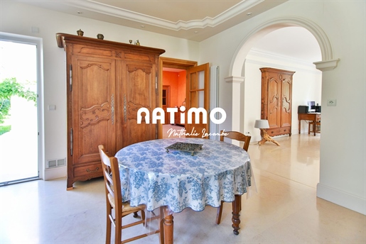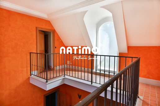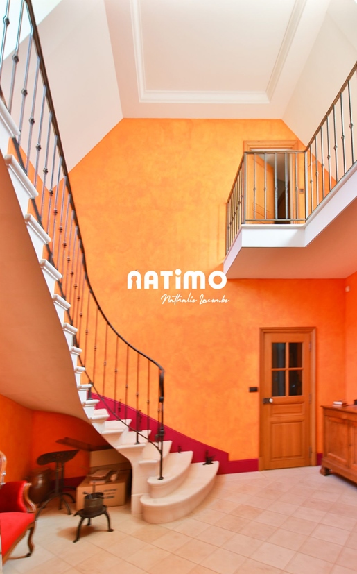 Maison principale (239 m²) comprenant au rez-de-chaussée de plain-pied : entrée, cuisine aménagée et équipée ouverte sur salle-à-manger, salon de 46m² avec cheminée à foyer ouvert, une chambre avec salle-d ‘eau et Wc, local technique. A l'étage : palier, couloir, une salle d'eau, une salle de bains et cinq chambres (12m², 14m², 16m² et deux chambres de 17m²).