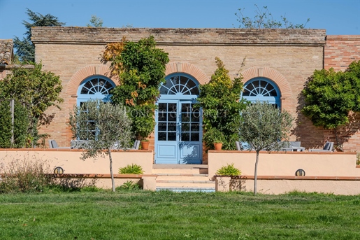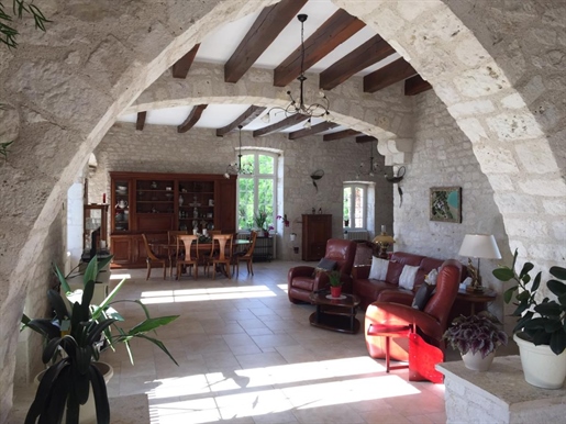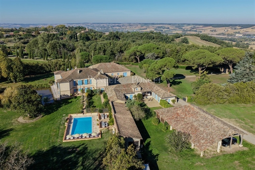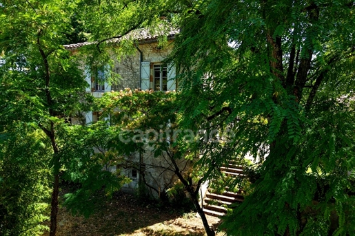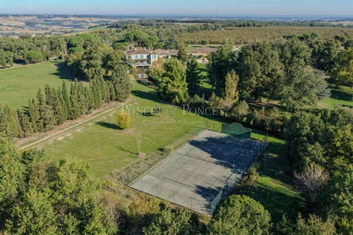 Composée de multiples bâtisses en pierre, terre cuite et terre crue, elle se situe dans un superbe écrin de verdure, en position dominante, sur un terrain arboré et paysager d'un peu plus d'un hectare…