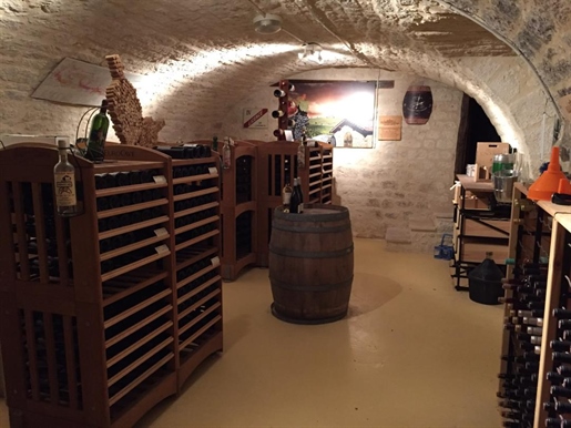 En contrebas de l'habitation principale et des dépendances : un Garage (60 m2), une Cave À Bois et une Cave À Vin (60 m2).