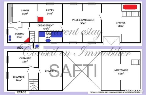 A l'étage : une salle de bain avec Wc, ainsi que quatre chambres (de 15 à 30 m2).