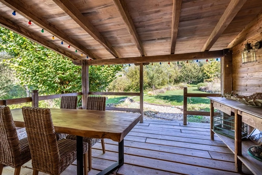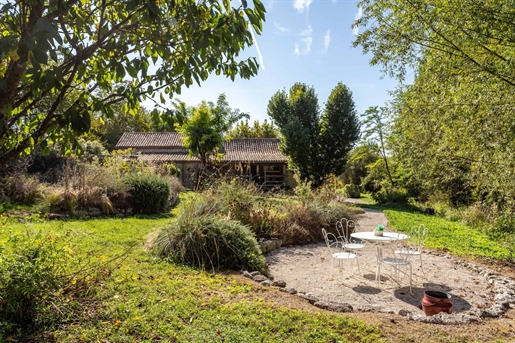 Chaque pièce accède directement au jardin supérieur qui entoure la maison, ainsi qu'à une terrasse qui dessert une première dépendance (120 m2) abritant un Atelier et une Forge, côté Nord, puis à une seconde, côté Est, accueillant une Salle De Jeux (60 m2) où la famille & les amis aiment se réunir.