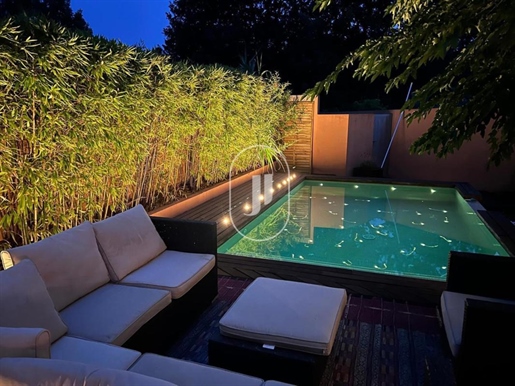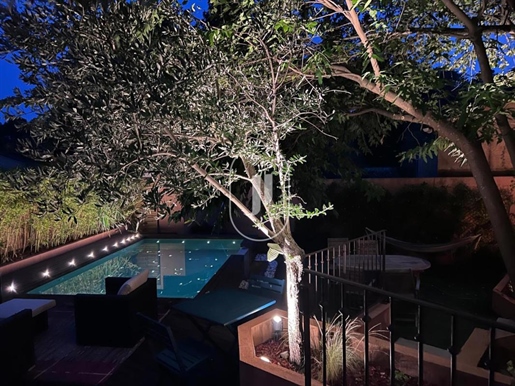 Côté extérieur, les espaces de vie se prolongent sur de larges terrasses autour d'une belle piscine et son pool house.