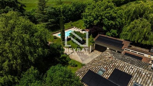 Propriété de caractère aux abords de Montbellet, posée en bordure d'un cours d'eau, offrant un ensemble immobilier rare et exceptionnel sur près de 2,75 hectares. L'entrée se fait par une large allée cossue, bordée par la rivière d'un côté et une magnifique piscine de l'autre, qui annoncent immédiatement l'atmosphère calme et verdoyante du lieu. La maison d'habitation, élevée sur caves et répartie sur trois niveaux, s'organise autour d'une vaste pièce de vie au rez-de-chaussée, donnant sur une belle terrasse ombragée. La cuisine ouverte, aménagée et équipée avec des matériaux de belle qualité, s'ouvre sur cet espace convivial où la lumière naturelle circule facilement. Un cellier et un Wc séparé complètent ce niveau pratique au quotidien. À l'étage, un palier dessert deux chambres, dont une bénéficiant d'une salle d'eau privative, un dressing (qui peut retrouver son usage de chambre), une salle de bains double et un Wc séparé. Au second étage, un palier distribue quatre chambres supplémentaires, une salle d'eau et un Wc sanibroyeur séparé — une configuration idéale pour accueillir famille et invités tout en préservant des espaces de vie indépendants. Le vaste sous-sol abrite des caves et la chaufferie, offrant des volumes de stockage et de local technique appréciables. Les dépendances ajoutent une dimension polyvalente à la propriété : d'anciens box à chevaux ont été transformés en une petite salle de sports et une vaste salle Home Cinéma aménagée, chauffées par une pompe à chaleur indépendante, permettent des usages variés — loisirs, travail ou projets d'accueil. Le reste des dépendances est à usage d'atelier et bûcher. Sur la parcelle se trouvent également une serre, une cuisine d'été, un coin potager/verger, un poulailler, qui renforcent l'autonomie et l'attrait du site pour les amoureux du jardinage et de la vie en extérieur. Une stabulation a été édifiée sur une partie haute des prés offrant la possibilité d'accueillir aisément toute sorte d'animaux, à proximité de la propriété. L'extérieur est un atout majeur : de vastes prés pour plus de 2 hectares, une belle piscine accompagnée d'un pool-house pour profiter pleinement des beaux jours, et de grands espaces arborés et clos pour lesquels un forage de 55 m avec pompe automatisée alimente l'arrosage automatique sur la grande partie de la propriété. Sur le plan technique, le confort est assuré par un chauffage mixte (pompe à chaleur couplée à une chaudière fioul) et des huisseries en double vitrage aluminium. Des panneaux photovoltaïques installés en 2022, associés à un système de stockage de l'énergie, ont permis de réduire significativement la facture énergétique. L'assainissement est pris en charge par une micro-station très récente, garantissant une installation aux normes. Enfin, la réglementation locale est favorable à certains projets : environ 3 700 m² sont autorisés par le Plui pour une exploitation à destination touristique, ouvrant des perspectives pour un usage partiel en activité d'accueil. Pour découvrir cette propriété au charme champêtre, son potentiel multiple et son environnement préservé, contactez-moi au Zéro 6.81.88.... Afin d'organiser une visite sur place. Rachel Millet- Agent indépendant Neyrat Immobilier. Les informations sur les risques auxquels ce bien est exposé sont disponibles sur le site Géorisques :