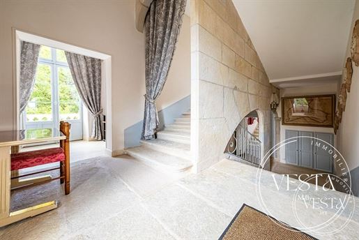 Vesta Mb vous présente une demeure d'exception au coeur de la Côte-d'Or : le Château de Gemeaux, héritage du Xvii? siècle classé Monument Historique, situé à seulement 20 minutes de Dijon. Implanté dans le charmant village de Gemeaux, ce château chargé d'histoire se dresse fièrement sur un terrain clos et arboré de plus de 7 200 m². Édifié sur les vestiges d'une ancienne place forte médiévale, il fut sauvegardé et restauré en ce début de siècle. Symétrie parfaite, quatre pavillons d'angle, balustrades en pierre, et élégants vases ornementales témoignent d'une conception soignée et harmonieuse. L'ensemble a traversé les siècles, entre embellissements, sauvetages in extremis pendant la Révolution, et accueil de blessés durant la Grande Guerre. Derrière sa façade noble, le château offre près de 685 m² habitables répartis sur trois niveaux. Chaque étage est desservi par un majestueux escalier en pierre et un escalier secondaire discret, facilitant la circulation au quotidien. Dès l'entrée, les matériaux authentiques se dévoilent : dalles de Bourgogne, plafonds à la française, cheminées en marbre, poutres peintes... L'histoire s'exprime dans chaque détail, sans pour autant renoncer au confort contemporain qui s'est imposé pour sa rénovation. La propriété comprend aujourd'hui 17 pièces dont 12 chambres spacieuses, toutes équipées de salles d'eau ou de bains privatives. Les volumes sont généreux, lumineux et offrent une belle fluidité entre les espaces. Le rez-de-chaussée abrite un grand salon traversant, salle à manger, une cuisine aménagée avec accès direct à une terrasse ensoleillée, un bureau, une chambre avec salle d'eau, et une chapelle privée ornée d'un vitrail. À l'étage : une salle de billard avec vue sur le parc, un petit salon, une suite avec terrasse privative et deux chambres au caractère affirmé. Le dernier niveau accueille six autres chambres, toutes dotées de leurs propres sanitaires, disposées autour d'un long couloir au sol de tomettes anciennes. Le sous-sol, anciennement dédié aux cuisines, présente un fort potentiel d'aménagement. Grâce à ses nombreuses ouvertures et sa belle hauteur sous plafond, il pourrait facilement accueillir des salles de séminaire, une galerie d'art, salle de dégustation, espace bien-être... À l'extérieur, le parc se prête tout autant à la contemplation qu'à l'événementiel. Des tilleuls centenaires, côtoient des arbres fruitiers et des massifs fleuris. Un lieu paisible, baigné de lumière, idéal pour recevoir ou simplement profiter du calme environnant. Ce château aux multiples vies s'adapte à de nombreux projets : demeure familiale d'exception, hôtel de charme, maison d'hôtes, lieu de réception ou encore résidence artistique. Sa configuration actuelle, son excellent état d'entretien, ses éléments patrimoniaux préservés et sa situation géographique idéale en font une opportunité rare sur le marché. Un triple garage et un espace de stationnement à l'entrée viennent compléter les prestations. Vivre au Château de Gemeaux, c'est habiter un chapitre vivant de l'histoire bourguignonne, dans un écrin où chaque pierre raconte une époque, chaque recoin dévoile un héritage.