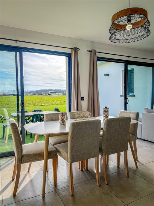 Villa d'Architecte d'Exception – Élégance, Confort et Vue Majestueuse sur les Pyrénées Située à seulement 5 km de Pau, au cœur d'un quartier résidentiel paisible et verdoyant, cette sublime villa d'architecte de plus de 200 m²,6 pièces,3 chambres parentales,deux garages, allie modernité, élégance et prestations haut de gamme. Conçue pour offrir un cadre de vie exceptionnel, elle séduit par ses volumes généreux, sa lumière omniprésente et ses extérieurs idylliques. Un espace de vie baigné de lumière Dès l'entrée, le ton est donné : beaux matériaux, lignes épurées et ambiance chaleureuse. L'immense pièce de vie se déploie , avec un salon convivial, une salle à manger élégante et une cuisine ouverte entièrement équipée, sublimée par des finitions haut de gamme et un îlot central parfait pour recevoir. Exposée plein sud, elle s'ouvre sur une magnifique terrasse offrant une vue panoramique imprenable sur les montagnes. Attenante à la cuisine, une buanderie discrète et fonctionnelle donne accès à un garage carrelé spacieux, pensé pour allier praticité et confort. Un espace nuit intime et raffiné Superbe suite parentale, véritable cocon de sérénité, avec un dressing sur mesure, une salle de bain luxueuse équipée d'une baignoire design et d'une douche à l'italienne. Deux chambres élégantes, chacune dotée de sa salle d'eau privative, pour garantir intimité et bien-être à toute la famille ou aux invités. Combles aménageables, offrant une belle opportunité d'agrandissement selon vos envies (bureau, salle de jeux, chambre supplémentaire…). Des extérieurs somptueux pour des instants inoubliables Piscine à débordement nichée au cœur d'un écrin de verdure, véritable havre de paix où se mêlent luxe et détente. Cuisine d'été avec salon extérieur, idéale pour prolonger les soirées sous les étoiles. Espace guinguette cosy et intimiste au fond du jardin, parfait pour des moments conviviaux et festifs. Deux garages, dont un second de 15 m², offrant un espace de rangement supplémentaire. Des prestations d'exception pour un confort absolu Plancher chauffant dernière génération pour une chaleur douce et enveloppante. Vmc double flux haut de gamme pour un confort thermique optimal en toute saison. Matériaux et finitions nobles, alliant esthétisme et qualité. Un véritable bijou architectural, où chaque détail a été pensé pour créer une atmosphère chaleureuse, élégante et unique. Un lieu rare à découvrir sans tarder – Contactez-nous pour une visite privée ! Les honoraires sont à la charge du vendeur. Les informations sur les risques auxquels ce bien est exposé sont disponibles sur le site Géorisques : Georisques. Gouv. Fr. Contactez Hélène Monnier Entrepreneur Individuel, Agent commercial (Rsac N°877 598 136 Greffe de Pau) (réf. 598692 ) Nom du négociateur : Monnier Hélène Honoraires à la charge du Vendeur Statut du négociateur : agent commercial indépendant Lieu : Pyrénées-Atlantiques (64)