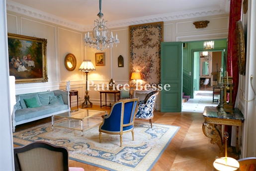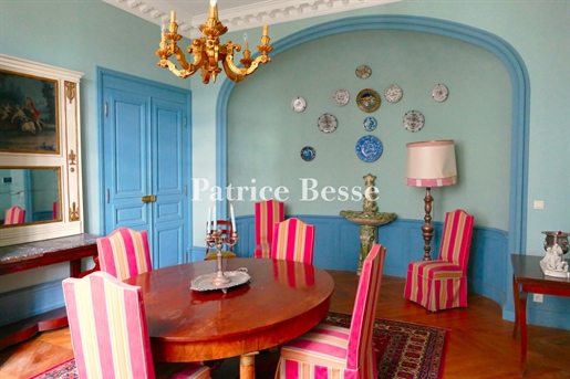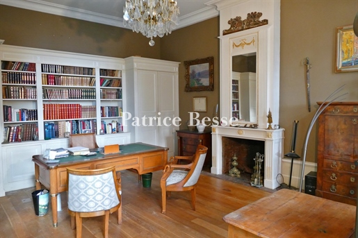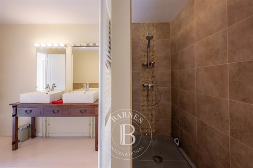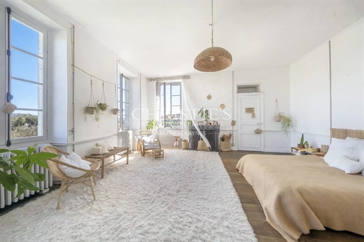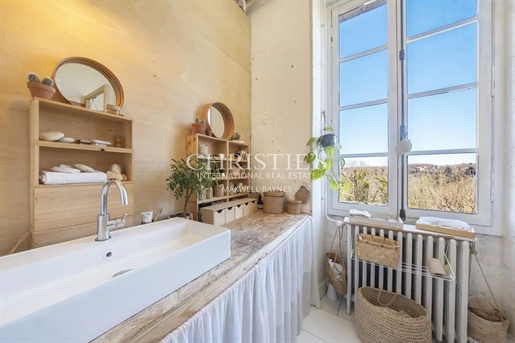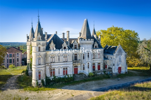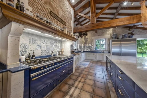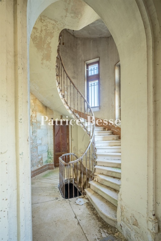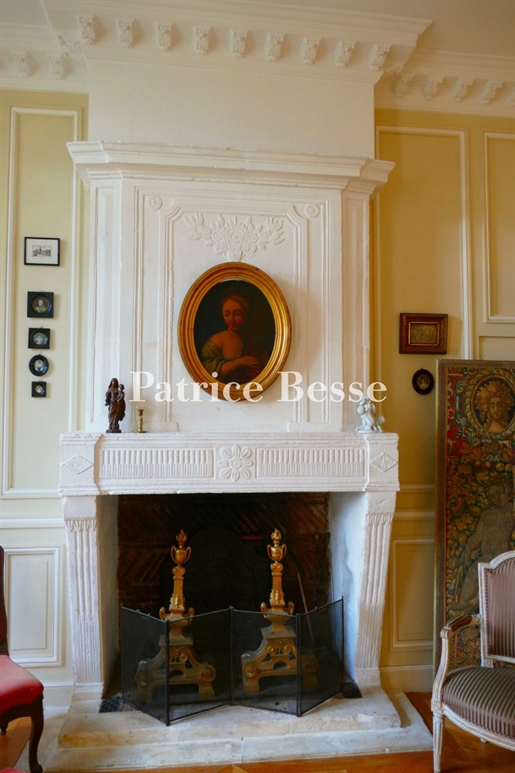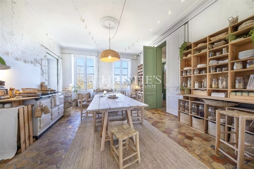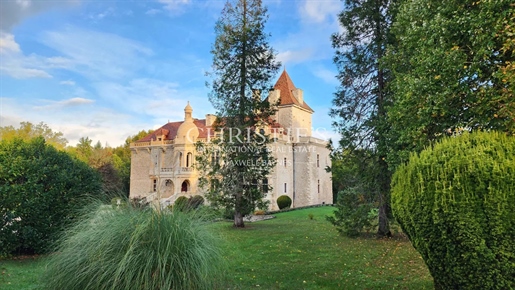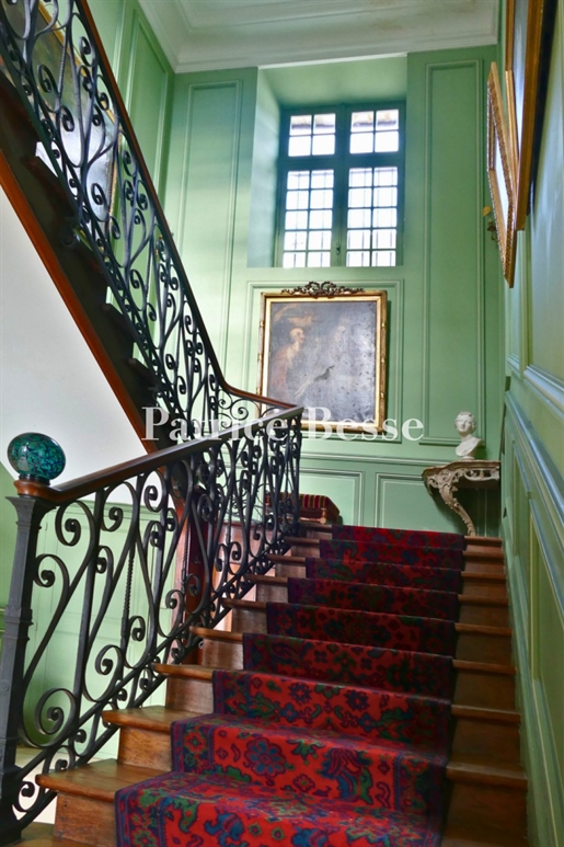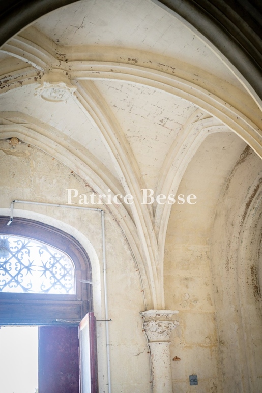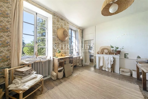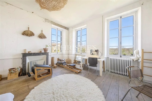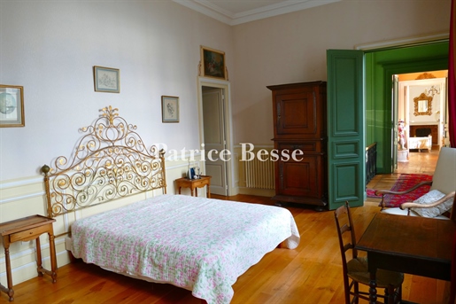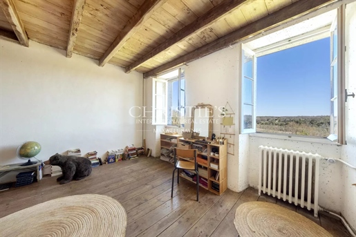 Le château, pièce maîtresse de l’ensemble, développe environ 500 m² habitables (avec potentiel d’extension à plus de 600 m²) et séduit immédiatement par la noblesse de ses volumes et l’extraordinaire luminosité qui baigne chaque pièce grâce à de larges ouvertures bien orientées. Haut de trois niveaux, il offre huit chambres, des salons traversants, une salle à manger élégante, une cuisine pleine de charme, une bibliothèque et de nombreux espaces de rangement. On y trouve des éléments de caractère conservés : parquets anciens, tomettes patinées, plafonds moulurés, cheminées en pierre et bois peint, escalier sculpté dans la courbe du mur… Chaque pièce invite à la contemplation, et certaines offrent une vue plongeante sur la vallée.