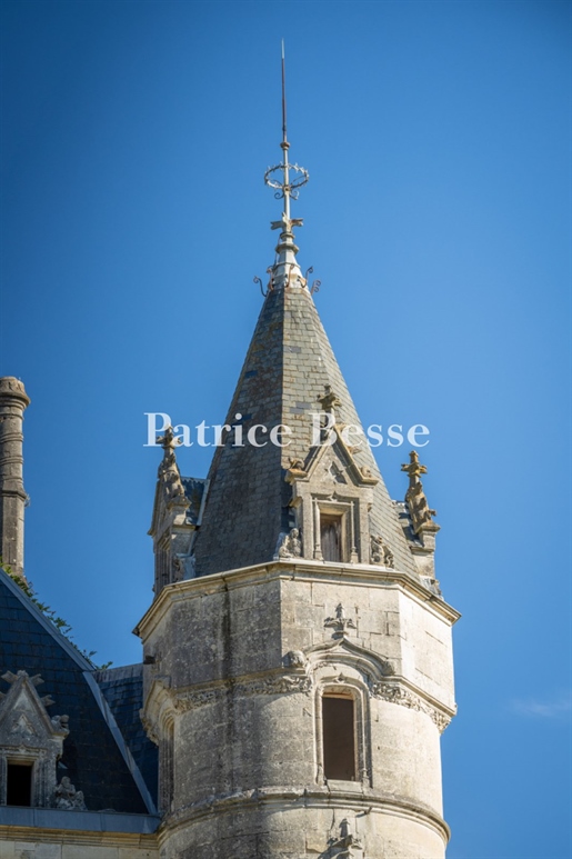 Flanqué de deux tours médiévales, le bâtiment principal est le témoin d’une longue histoire remontant au XIIIe siècle, remanié au XIXe pour gagner en confort tout en conservant son âme.