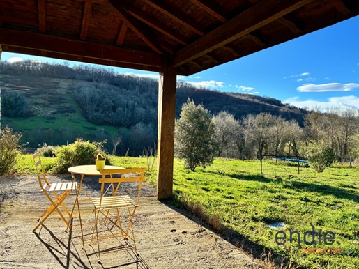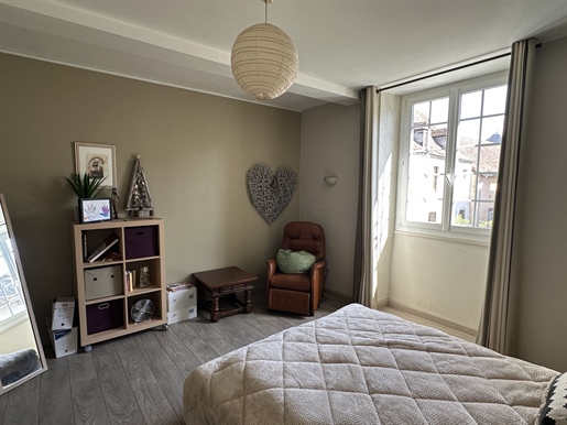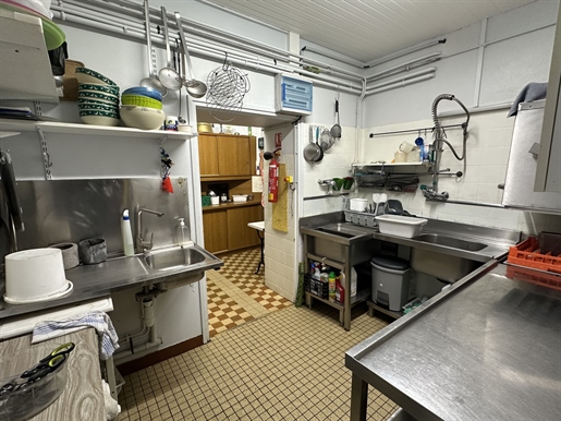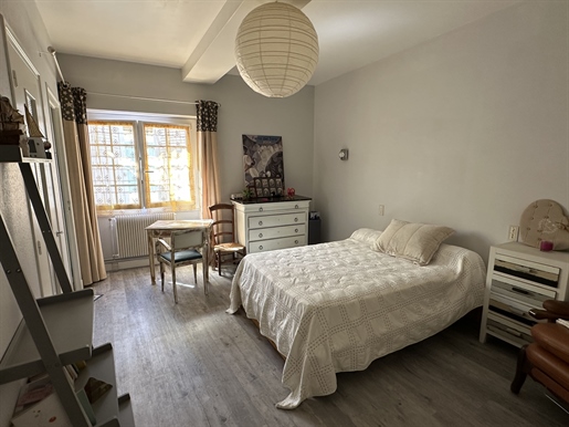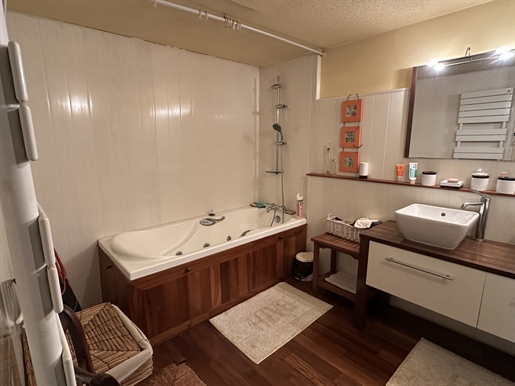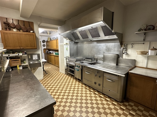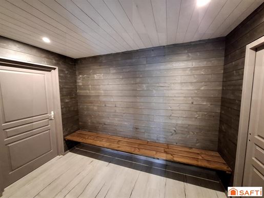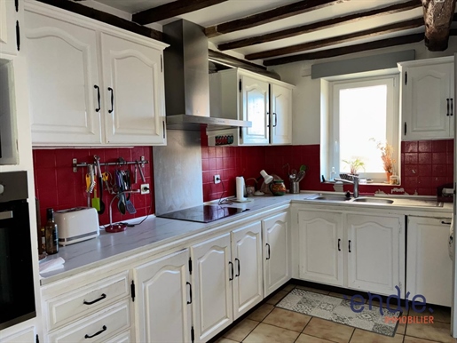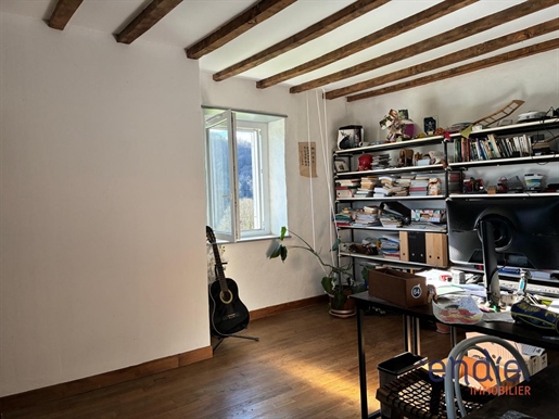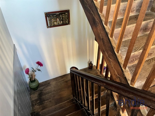 En franchissant la porte d'entrée, vous serez immédiatement séduit par le salon chaleureux, orné de poutres apparentes et d'un poêle à bois réconfortant. À votre droite, la cuisine équipée (13 m²) se dévoile, suivie d'une vaste salle à manger (41 m²) aux pierres apparentes, baignée de lumière naturelle, qui vous conduit sur une grande terrasse idéale pour profiter des belles journées en extérieur. Un Wc indépendant est également présent.