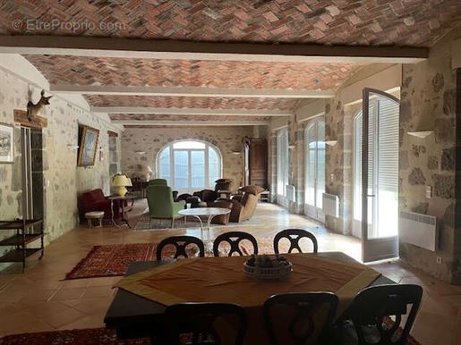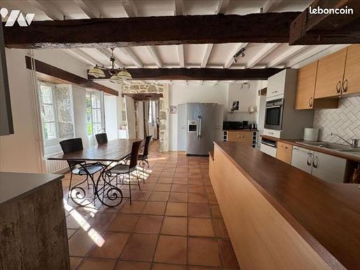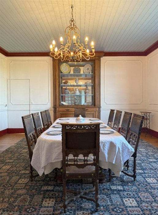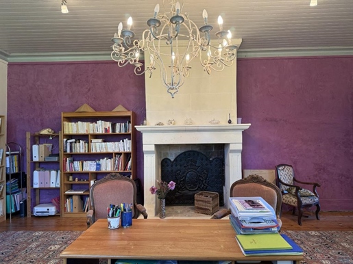 Située au sommet d'une colline et entourée de 19 hectares de prairies et de bois, cette vaste bâtisse en pierre bénéficie d'une intimité totale tout en se trouvant à seulement quelques kilomètres d'une ville dynamique offrant toutes les commodités. Elle appartient à la même famille depuis plus de vingt ans, qui y a laissé son empreinte, notamment avec la construction d'une magnifique piscine intérieure.
