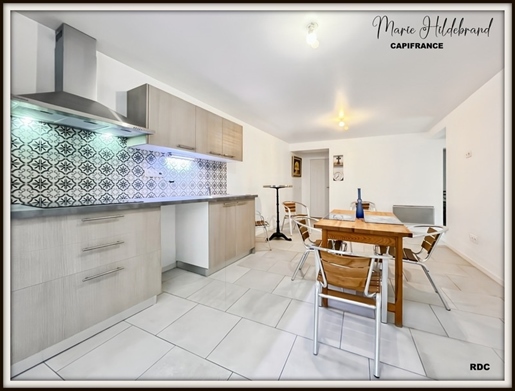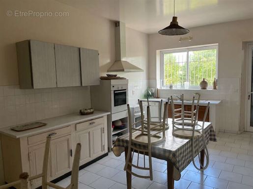 Derrière la salle à manger, on trouve une grande cuisine entièrement équipée, accompagnée d'une salle de petit-déjeuner et d'une cheminée, avec accès direct à la terrasse avant ainsi qu'aux zones piscine et sous-sol. Un Wc invités et une petite buanderie complètent ce niveau.