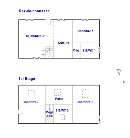 deux chambres supplémentaires, un petit salon, des toilettes, et un palier aménagé qui devient naturellement un espace jeux, lecture ou bureau selon les besoins.