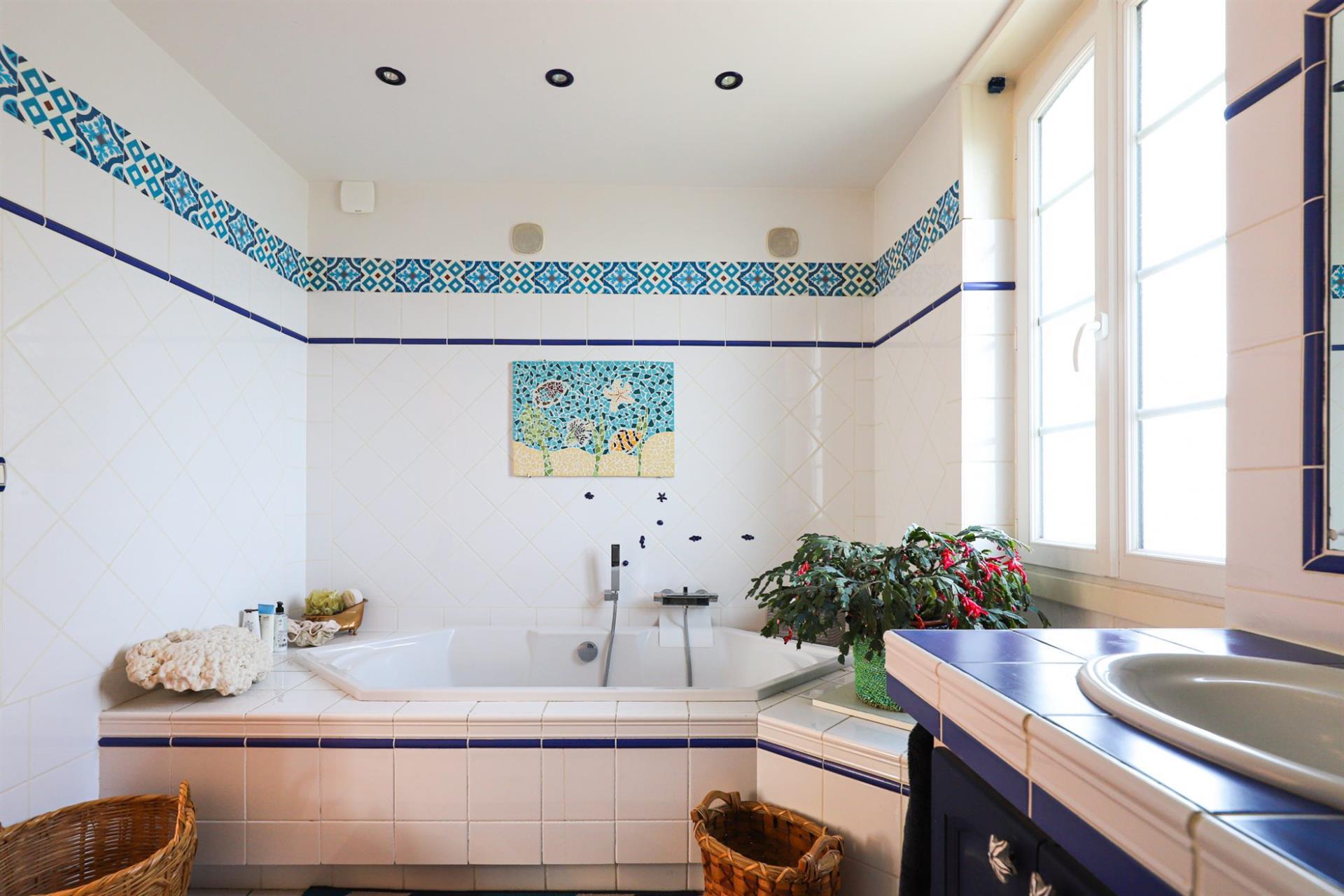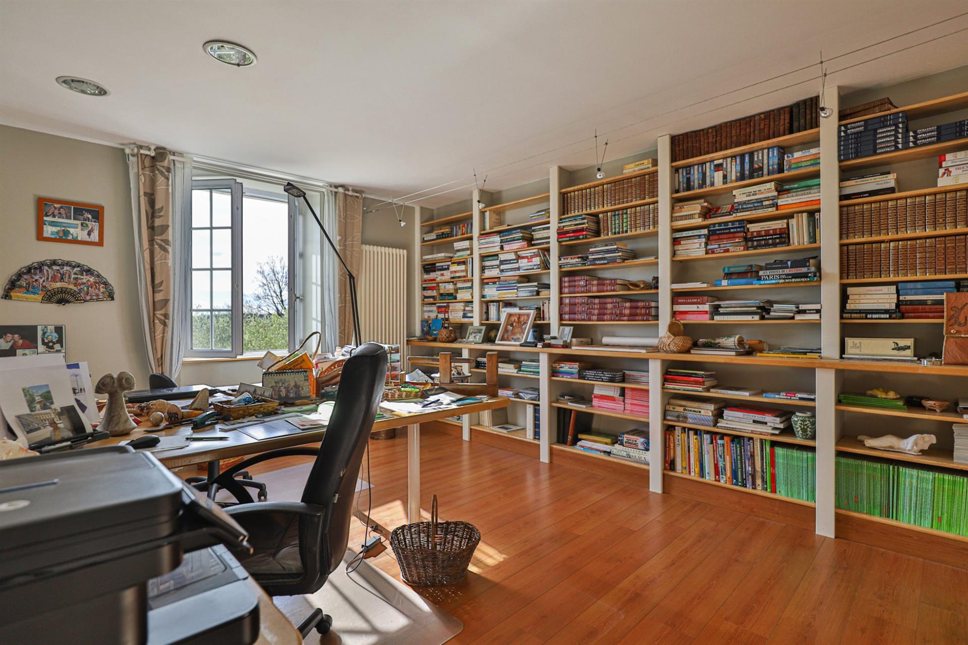 Au premier étage : trois grandes chambres avec rangements dont une suite et un bureau de 21 m2 avec bibliothèque et rangements, salle d’eau indépendante, Wc séparés.