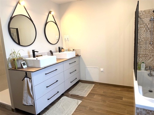 Cette bâtisse de caractère séduit par ses éléments anciens soigneusement conservés : poutres apparentes, parquets massifs, belles hauteurs sous plafond (2,70 m), volumes généreux et luminosité omniprésente (exposition Sud et Ouest du séjour). De très nombreux travaux récents ont été réalisés : ravalement, peintures extérieures, système de chauffage, cuisine, terrasses, piscine, etc...La maison affiche une performance énergétique absolument exceptionnelle (Dpe A) pour une construction de cette époque (chauffage au sol au rez-de-chaussée et radiateurs à l’étage alimentés par pompe à chaleur récente, ballon thermodynamique, chauffe-eau solaire).