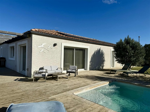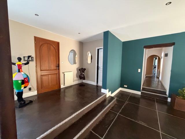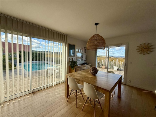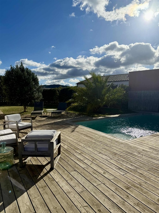 Vous découvrirez une superbe pièce de vie traversante, exposée plein sud, bénéficiant dâune grande baie vitrée ouvrant directement sur le jardin et sa magnifique piscine.