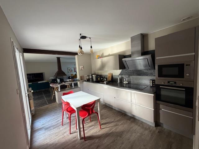 La cuisine moderne, entièrement équipée, dispose dâun îlot central et sâouvre harmonieusement sur le salon, idéal pour des moments conviviaux.