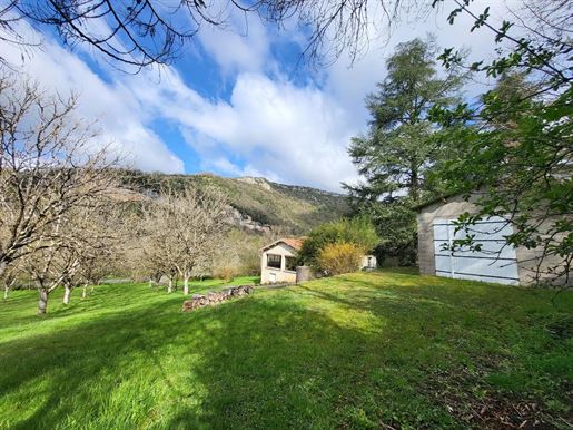 Le terrain, véritable écrin de nature, s'étend sur plus de 5 000 m² et accueille de majestueux noyers ainsi qu'une belle variété d'arbres fruitiers. Ce cadre enchanteur, avec sa vue imprenable sur les gorges, offre un décor paisible et ressourçant, idéal pour les amoureux de calme et de nature.