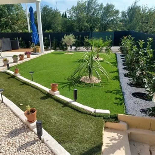 Rare, Spacieuse villa récente, Avec Dépendances, permettant de concilier habitation principale et Activité Professionnelle (artisan, commerçant, profession libérale…) ou Loisir Personnel (salle de musique, atelier de peinture, collectionneur...) Vente entre particuliers uniquement, pas de démarchage de professionnels, merci de respecter mon choix Commune de Peret, charmant village situé entre Pézenas et Clermont l'Hérault Je vends une spacieuse villa récente, de 6 pièces principales + cuisine équipée, hors lotissement, non mitoyenne, très fonctionnelle, parfaitement entretenue (intérieur et extérieur) et modernisée depuis 6 ans par différents professionnels (toutes les factures seront transmises). Cette villa d’une superficie habitable de 190 m² (sur 2 niveaux) se compose Au Rdc (accès de plain pied) : - spacieux hall d’entrée 20 m², - pièce principale 45 m² avec cuisine ouverte, entièrement équipée, et baie vitrée permettant l’accès à une grande terrasse carrelée sans vis à vis exposée plein sud (pergola électrique en aluminium), vue très agréable, - cellier buanderie 7 m², - 1ère chambre 15 m² (avec grand placard), - confortable salle de douche 7 m² très récente, avec grande douche, meuble vasque et colonne de rangements, - toilettes séparées avec lave mains. A l’étage : - bureau ou 2ème salon Tv 24 m², - 2ème chambre 17 m² (avec grand placard), - 3ème chambre 18 m², - 4ème chambre 25 m² (avec 2 grands placards), - salle de bains 9 m² très récente (avec grande douche + baignoire), meuble vasque et colonne de rangements, - toilettes séparées. Coup de cœur assuré ! Pas de travaux à prévoir Intérieur très lumineux. Construction traditionnelle de qualité : dalle béton, murs en parpaings, doublage en briques. Menuiseries Pvc haut de gamme, remplacées très récemment + baie vitrée et volets blancs en aluminium. Isolation supplémentaire de la toiture + cumulus, très récents. 3 Dépendances aménageables sont présentes (avec dalles, fenêtres, eau et électricité) : - Ancienne grange en pierres (43 m² au sol, non cloisonnée, hauteur sous faîtage 3,64 m), avec toiture Neuve réalisée en 2026, non visible sur la photo. - Garage double (39 m² au sol) avec porte sectionnelle électrique, - Sous sol de l’habitation (53 m²) utilisé actuellement en salle de sport (hauteur sous plafond 3,43 m). Terrain (en zone Ua du Plu) d’une superficie de 500 m² entièrement clos, facile d’entretien : cour pavée en pierres naturelles Porphyre et plusieurs espaces paysagers avec arbres fruitiers et arbustes. Portail électrique + visiophone. Environnement calme et ensoleillé. Écoles, arrêts de bus, associations et commerces de proximité à pieds. Accès rapide autoroute A75. Tous les diagnostics immobiliers ont été réalisés. Aucune anomalie électrique. Très bon Dpe classe B (102) et A (3). Chauffage principal poêle à granulés 11 kw (performant, économique et très confortable) + radiateurs à inertie et sèches serviettes très récents. Raccordée au tout à l’égout. Fibre Internet installée 399 000 euros Autres photos disponibles, 1er contact par téléphone