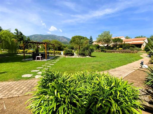 Située dans la vallée de la Gravona, plaine de Peri, non loin de la mairie annexe, propriété regroupant une villa principale de type T7 sur 2 niveaux, un T3 indépendant mitoyen pour une surface totale de 310 m2 env.(sous réserve de mesurage) et un parc avec piscine, sur un terrain plat de 3600 m2. L'environnement est préservé offrant calme et tranquillité, sans vis-à-vis.Nous accédons à la propriété entièrement fermée, par un portail électrique, à l'arrière de la villa. L'entrée nous mène directement sur le coin jour, un grand salon, une salle a manger et une cuisine ouverte. Le salon très lumineux de part ses grandes baies vitrées est prolongé par une terrasse, La cuisine aménagée avec cheminée dispose d'un ilot, est également prolongée par une terrasse avec barbecue. Coté salle à manger, un cellier/buanderie, puis une première chambre et une seconde pièce sur le puis le salon, une autre partie nuit de plain-pied, accessible par un grand couloir avec de nombreux rangements muraux, un wc séparé, une salle d'eau et une grande chambre avec placard, une terrasse.Un escalier nous conduit a une chambre parentale avec terrasse, dressing et salle de bain avec wc. Puis un wc, une salle de bain, un dressing, 3 chambres dont une avec terrasse et accès direct vers l'extérieur par un puis l'arrière de la maison, une seconde entrée indépendante permettant l'entrée du T3 se composant d'une petite cuisine aménagée, une salle de bain avec wc, 2 salons avec terrasse et mezzanine.L'extérieur, très agréable, est un parc magnifique avec piscine et sa plage, de nombreux arbres, plantes méditerranéennes et fleurs. Un forage.Sur la partie arrière la plus ombragée (oliviers), un grand parking, un espace jeu pour les enfants, un poulailler, et un abri de jardin. Nombreuses prestations : cheminées, climatisation,Ce domaine empreint de nombreux espaces tant à l'intérieur qu'a l'extérieur ne demande qu'a trouver une nouvelle famille, amoureux de la nature, et de la campagne tout en étant a un quart d'heure du grand Ajaccio, ses écoles, collège, commerces, espaces médicaux et 20 mn d'Ajaccio, des ports et aéroport.Honoraires à la charge du vendeur. Classe énergie C, Classe climat A Montant moyen estimé des dépenses annuelles d'énergie pour un usage standard, établi à partir des prix de l'énergie de l'année 2021 : entre 1980.00 et 2500.00 €. Les informations sur les risques auxquels ce bien est exposé sont disponibles sur le site Géorisques : .