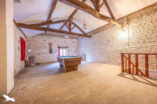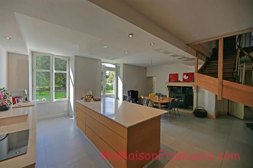 Cette magnifique maison de maître offre des pièces spacieuses et lumineuses, équipées d'un système de chauffage moderne à pompe à chaleur, avec 5/6 lits et 2 salles de bain. Elle est entourée de jardins clos et d'un ensemble de dépendances en pierre, et se trouve dans une ville avec des commerces. La propriété a été récemment rénovée au rez-de-chaussée, mais des travaux sont à prévoir au premier étage (plâtrage et ajout de salles de bain si nécessaire). Tous les services sont en place et les fenêtres sont toutes à double vitrage. Le chauffage est au sol au rez-de-chaussée et par radiateurs au premier étage.