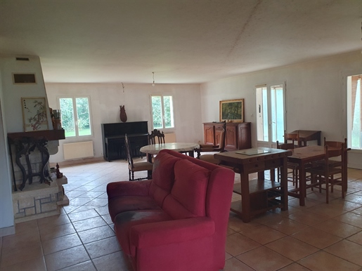 En rez-de-chaussée, la propriété dévoile une belle entrée de 23 m2 avec sa cheminée ancienne et massive, un salon lumineux de 35 m2 équipé d’un poêle à bois Godin très convivial pour vos soirées d’hiver, une cuisine dînatoire de 23 m2 entièrement ouverte sur le jardin et la terrasse, où vous pourrez prendre vos repas à l’ombre du cerisier...
