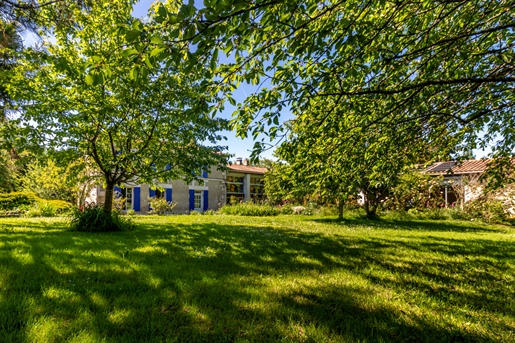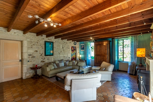 Idéalement située à 10 min de Saintes et 40 min de Royan, dans un village calme et agréable, je vous propose cette authentique maison charentaise de 276 m2 habitables, édifiée sur une parcelle de 1 780 m2, avec des dépendances, une surprenante piscine intérieure et un superbe jardin arboré.