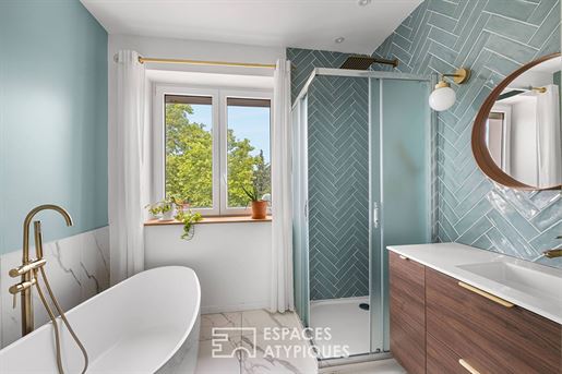Située dans un secteur pavillonnaire de Pierre Bénite, à quelques minutes à pied de la gare de Pierre Bénite, cette ancienne orangerie du XVe siècle, repensée en 2020 par une architecte, offre une parenthèse inattendue mêlant le charme de l'ancien à une rénovation contemporaine d'exception. Derrière une façade atypique se dévoile une maison familiale de 165 m² répartie sur trois niveaux. Dès l'entrée, le ton est donné : volumes généreux, lumière traversante et matériaux soigneusement sélectionnés. L'espace de vie, d'une superficie de 48 m², se compose d'une cuisine ouverte entièrement équipée, d'un espace salle à manger et d'un salon avec une large ouverture donnant directement accès à une belle terrasse en travertin, prolongeant naturellement l'espace de vie. En continuité, un jardin intimiste permet de profiter pleinement des instants ensoleillés, à l'abri des regards. Toujours au rez-de-chaussée, une première chambre avec salle d'eau privative permet de recevoir confortablement. Une buanderie et des toilettes complètent ce niveau. À l'étage, une vaste et lumineuse suite parentale avec dressing mural et salle de douche double côtoie deux autres chambres, présentant de très belles finitions dans le style d'un haussmannien revisité. Une salle de bain élégante et des Wc indépendants viennent parfaire cet espace nuit pensé pour la vie de famille. Au dernier niveau une mezzanine de plus de 16 m2, aux pierres apparentes, est aménagée aujourd'hui en salle de jeu /salon télé mais peut aussi constituer une 5ème chambre. À l'extérieur, les prestations sont à la hauteur des promesses. À l'avant, une cour permet de stationner jusqu'à quatre véhicules. À l'arrière, le jardin de 250 m² se vit comme une extension du séjour : végétation soignée, coin potager, cabanon et éclairage extérieur. L'ensemble est conçu pour profiter pleinement des douces soirées d'été, en toute intimité. Un atelier de 11 m² ravira les bricoleurs ou artistes en quête d'un espace dédié. Côté technique, la rénovation est irréprochable : isolation intérieure refaite, toiture rénovée, menuiseries neuves avec volets roulants motorisés. Le système de chauffage performant, avec chaudière gaz à condensation, est complété par une climatisation réversible à l'étage. Le tout contribue aux excellentes performances énergétiques, attestées par un Dpe classé C. Aucun travaux à prévoir : cette maison est livrée clé en main, dans un état remarquable. La localisation dans un quartier paisible reste aussi un atout avec un accès rapide aux transports, aux écoles et aux commerces, tout comme aux gare d'Oullins et de Pierre-Bénite, facilitant les déplacements vers le centre de Lyon. La maison s'inscrit avec élégance dans son époque tout en conservant son âme. Ainsi, cette demeure singulière séduira les familles en quête d'espace et de sérénité, ou encore les amoureux des lieux chargés d'histoire, revisités avec talent. Classe Energie : C / Classe Climat : C Montant moyen estimé des dépenses annuelles d'énergie pour un usage standard, indexées aux années 2021, 2022, 2023 : entre 940 € et 1370 € (abonnement compris) Contact : Céline - Celine Kannengiesser (Ei) Agent Commercial - Numéro Rsac : 949 658 371 - Lyon.