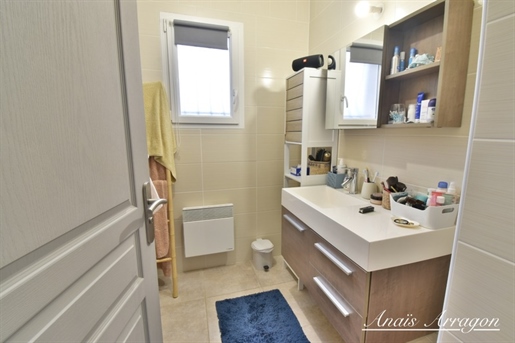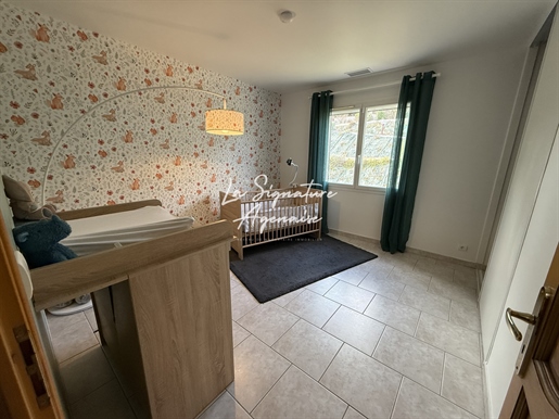 Le rez-de-chaussée propose deux chambres, parfaites pour des enfants ou un bureau, ainsi qu'une salle d'eau avec douche à l'italienne et meuble double vasque, offrant la possibilité d'une vie de plain-pied confortable. La décoration, moderne et soignée, confère à la maison une atmosphère chaleureuse et accueillante.