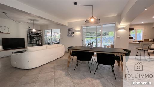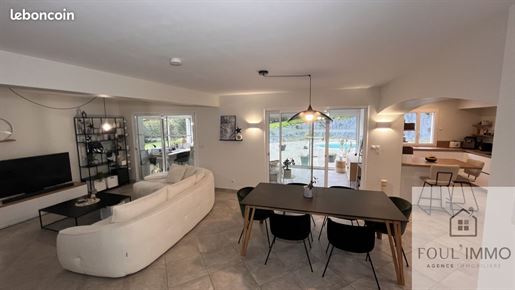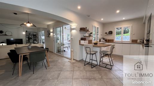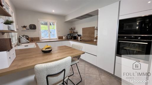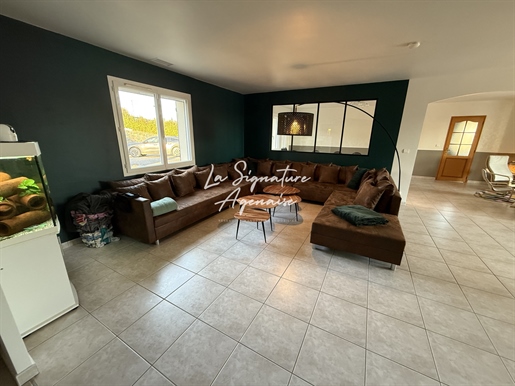 La visite se poursuit à l'intérieur par un sas d'entrée qui mène vers une belle pièce de vie lumineuse, pensée pour le quotidien d'une famille active. Salon et salle à manger forment un espace chaleureux et fonctionnel, où l'on se retrouve facilement après une journée de travail. Dans son prolongement, la cuisine ouverte, moderne et entièrement équipée, remplacée en 2023, devient un véritable lieu de partage, parfaitement intégrée à l'espace de vie.