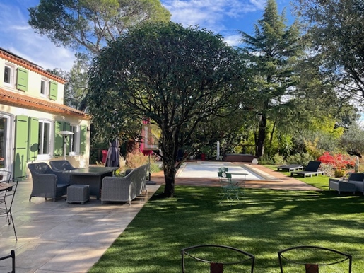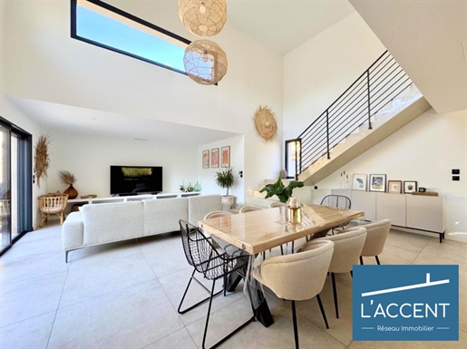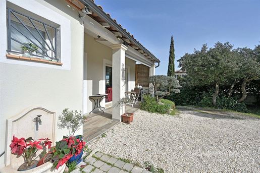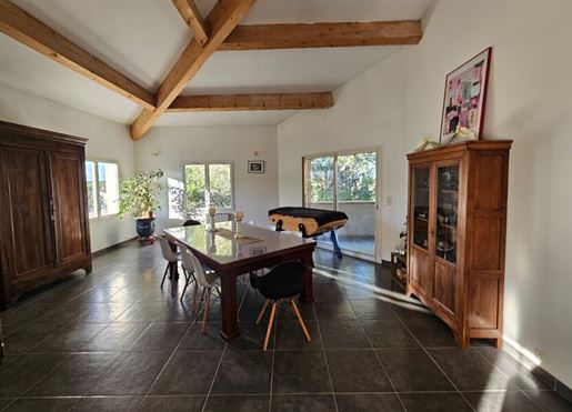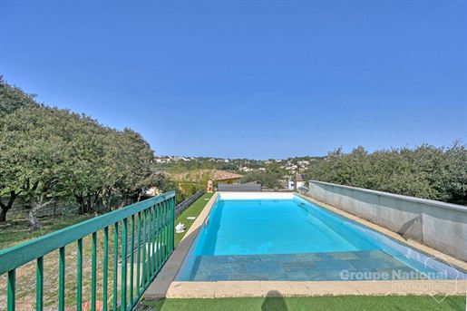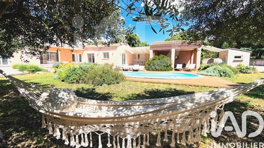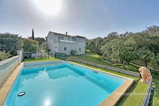 Iad France - Corinne Baud vous propose : Dans le charmant village prisé de Poulx. À 10 min de Nîmes, véritable havre de paix dominant la garrigue et situé à proximité des gorges du Gardon, se niche cette propriété rare, à l'abri des regards, au calme absolu, dans un écrin de verdure. Idéalement située en plein coeur du village, cette villa de caractère séduit dès l'entrée par une majestueuse allée privative menant à une élégante demeure parfaitement intégrée à son environnement naturel. Développée principalement de plain-pied sur une parcelle arborée de plus de 1900 m², la maison s'articule autour d'un jardin central, véritable coeur de vie, agrémenté d'essences méditerranéennes et d'arbres fruitiers. La nature y règne en maître, tandis que la lumière naturelle inonde chaque pièce grâce à de larges baies vitrées, créant une parfaite osmose entre intérieur et extérieur. Les espaces de vie – cuisine, salle à manger, séjour et salon – s'enchaînent avec fluidité dans une ambiance chaleureuse et élégante, idéale pour la vie de famille comme pour recevoir. Le coin nuit accueille quatre chambres, dont une somptueuse suite parentale de plus de 40 m². Un bureau indépendant de 15 m² vient compléter l'ensemble, idéal pour le télétravail ou les projets personnels. Les extérieurs, soigneusement paysagés et sans vis-à-vis, offrent une atmosphère confidentielle et propice à la détente comme aux moments conviviaux entre proches. À noter : une emprise au sol résiduelle permet jusqu'à la construction d'une seconde habitation. Un pool house de 35 m² complète le bien et peut facilement être aménagé en studio ou en local indépendant. Inter agence Bienvenue 50 / 50. In the charming and highly sought-after village of Poulx, a true haven of peace overlooking the garrigue and located close to the Gardon Gorges — an ideal spot for swimming and hiking — lies this rare property, sheltered from view, in absolute tranquility, nestled within lush greenery. Ideally situated in the very heart of the village, this character villa captivates from the moment you arrive, with a majestic private driveway leading to an elegant residence perfectly integrated into its natural surroundings. Primarily developed on one level and set on a beautifully wooded plot of over 1,900 sqm, the home is arranged around a central garden — the true heart of the property — enhanced by Mediterranean plants and fruit trees. Nature reigns supreme here, while natural light floods every room through large bay windows, creating a perfect harmony between indoor and outdoor living. The living areas — kitchen, dining room, lounge, and sitting room — flow seamlessly together in a warm and elegant atmosphere, ideal for family life as well as entertaining. The sleeping quarters feature four bedrooms, including a sumptuous master suite of over 40 sqm. À separate 15 sqm office completes the property, perfect for remote work or personal projects. The carefully landscaped, private grounds — with no overlooking neighbors — offer a secluded atmosphere conducive to relaxation as well as convivial moments with family and friends. Please note : remaining building rights allow for the construction of a second dwelling. À 35 sqm pool house further enhances the property and can easily be converted into a studio or independent space. Inter-Agency collaboration welcome (50 / 50). Honoraires d'agence à la charge du vendeur. Information d'affichage énergétique sur ce bien : classe Energie B indice 107 et classe Climat A indice 3. Les informations sur les risques auxquels ce bien est exposé, y compris l'obligation légale de débroussaillement, sont disponibles sur le site Géorisques : La présente annonce immobilière a été rédigée sous la responsabilité éditoriale de Mme Corinne Baud mandataire indépendant en immobilier (sans détention de fonds), agent commercial de la Sas France immatriculé au Rsac de Nîmes sous le numéro 538 197 971, titulaire de la carte de démarchage immobilier pour le compte de la société France SAS.Informations Loi Alur : Honoraires charge vendeur. (Gedeon )