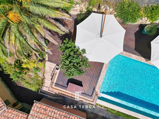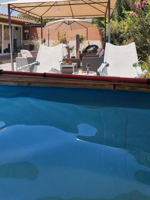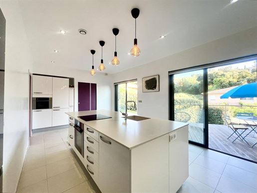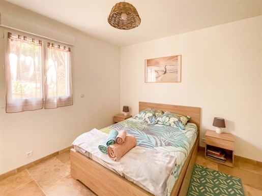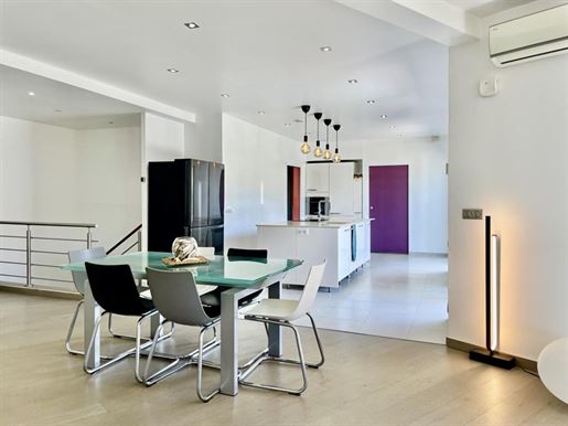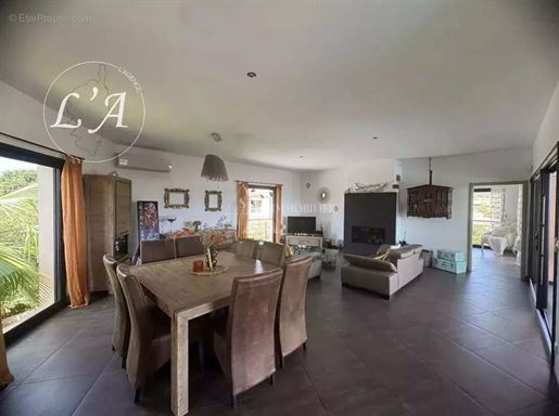Construite sur un terrain clos et joliment paysagé d’environ 1 500 m², la propriété offre de beaux volumes, de larges terrasses et un espace extérieur soigné, alimenté par un forage. Un garage spacieux de 60 m² complète l’ensemble.