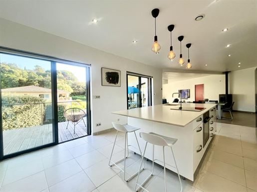 Située sur la commune de Viggianello, à deux pas du centre de Propriano, du port, des commerces et des plages, la villa 'Sana' d'une surface d'environ 200 m² habitable profite d’un environnement calme avec une vue dégagée sur les montagnes corses.