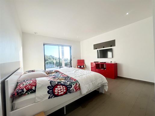 Enfin, à l’arrière de la villa, une grande piscine chauffée à débordement 10 x 4 m avec terrasse en teck permettant de profiter du calme et du panorama.