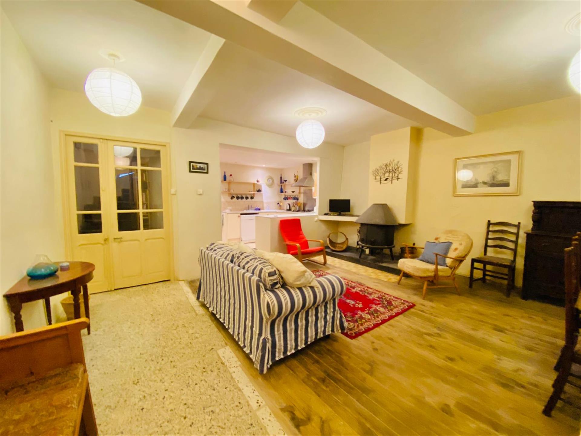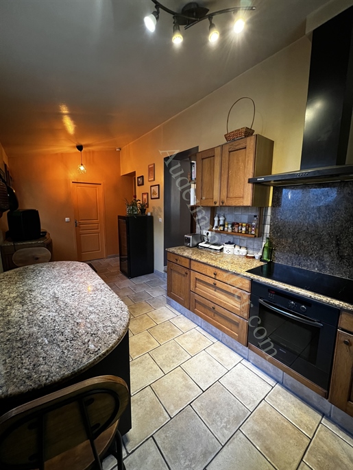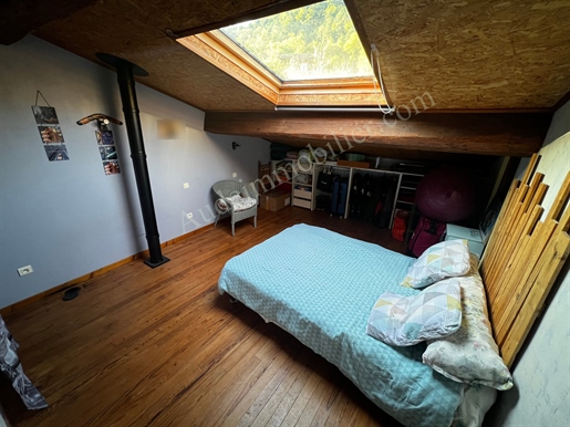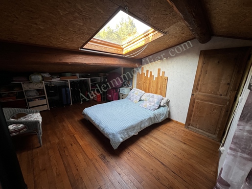 Située dans un village de la Haute-Vallée de l'Aude, à 10 minutes de Puivert, village touristique et d'Espéraza village avec commerces et services, maison de village avec cour, terrasse et garage. D'une surface habitable de 114,93m2, ce bien se compose de : au rez-de-chaussée : une cuisine de 14,7m2, une arrière-cuisine, un séjour / salon de 25m2 avec poêle à pellets, un couloir de desserte, un Wc, un cellier, une salle d'eau. Au 1er étage : un palier, une chambre de 9,3m2 avec placard, un Wc, un palier, une chambre de 10,7m2 avec placard, un placard, une chambre de 10,33 m2. Au 3e étage sous pente : une chambre de 23,7 m2 au sol (12m2 en loi carrez) et une chambre de 16,58m2 (9m2 en loi carrez). A l'extérieur : une cour de 60m2, un garage de 21,77m2, une terrasse de 27,3m2.