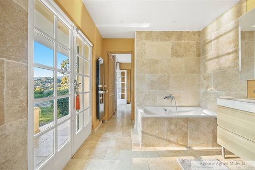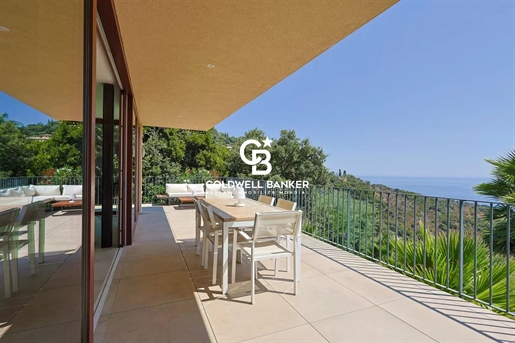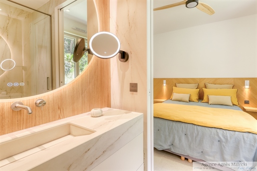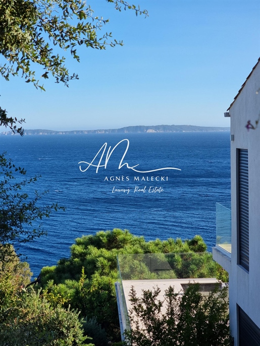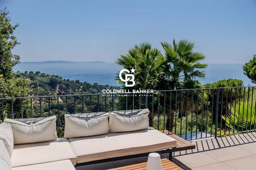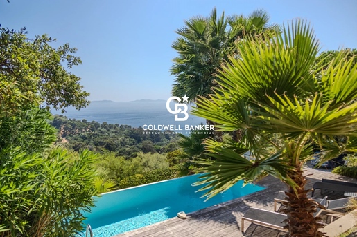 LE Rayol Canadel - Just 180 meters from the sea, in the heart of a privileged site in Rayol-Canadel, this villa, built in 1990 by architect Georges Grateau and decorated by Jean-Paul Faye, combines prestige, authenticity, and lush nature. At the end of a beautiful tree-lined driveway, the property reveals itself, nestled within a landscaped park of over 4,260 m2. It offers approximately 380 m2 of living space spread over 4 levels, served of course by an elevator, complemented by a caretaker’s house of 81 m2, two garages (18 m2 + 15 m2), and two cellars. The property also features a 12.5 × 6 m swimming pool, hidden from view, as well as several parking spaces. Facing southwest, the villa enjoys a panoramic view of the sea, Cap Nègre, and the blazing sunsets. Although its construction dates back to 1990, inside it reveals a timeless soul, where materials, volumes, and decor tell their stories. Here, every room breathes the charm of Provence: old stones, weathered shutters, warm living rooms, and flower-filled terraces create an authentic atmosphere, inherited from a prestigious past. More than a contemporary villa, it is a haven where today’s elegance meets the character of yesterday — a rare symbiosis of modern comfort and traditional spirit. For lovers of charm, history, and authenticity by the sea. Ready to discover this extraordinary gem and feel its magic ? Contact me to arrange a private viewing and let yourself be enchanted. Georgelin Malecki — Real Estate Consultant — Rsac 981 018 971