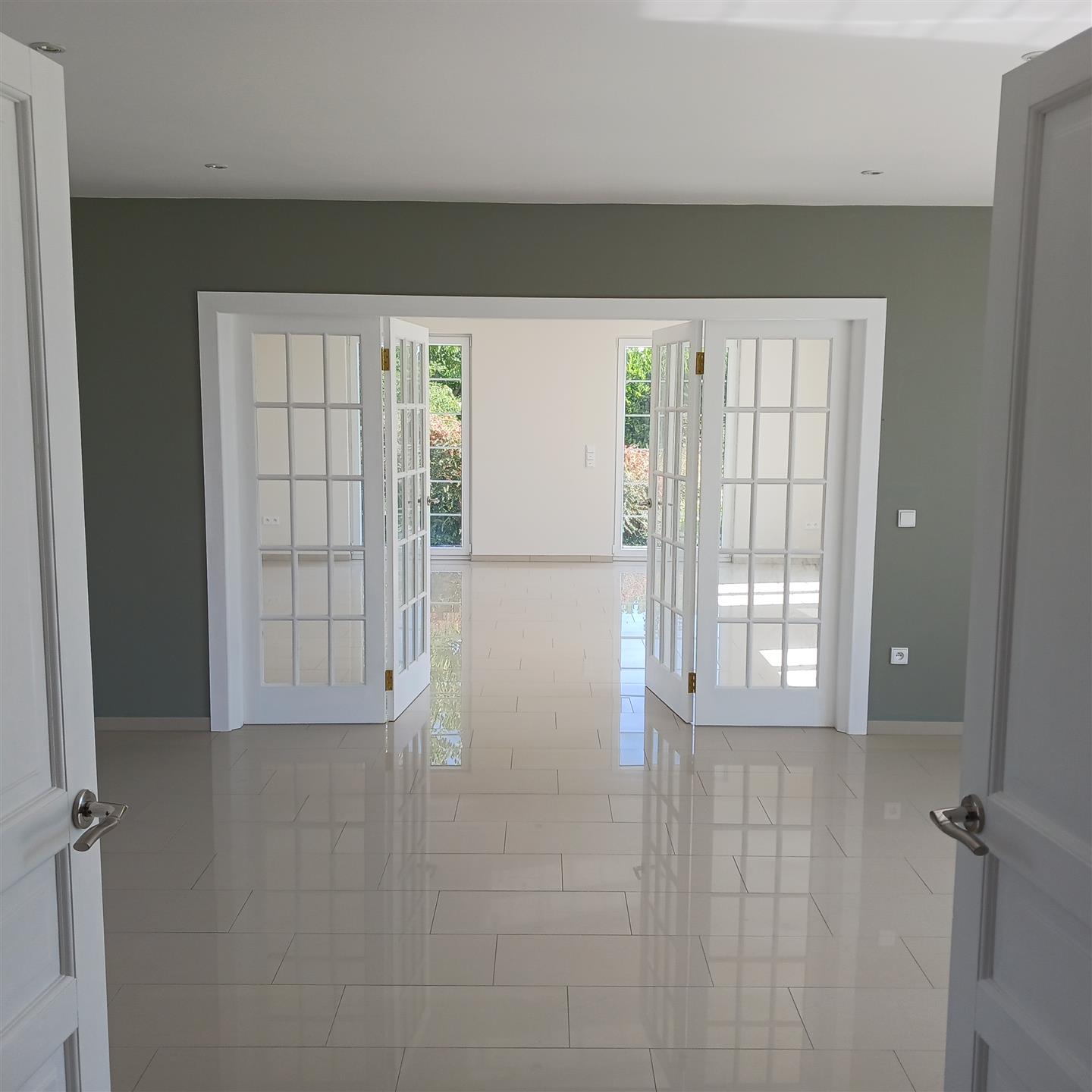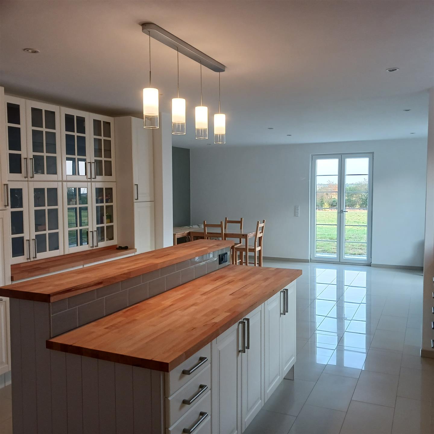 Construite en 2008, cette résidence exceptionnelle, détachée et écologique allie un design propre et simple à une efficacité énergétique exceptionnelle. Un hall d’entrée à double hauteur, un grand salon avec des portes-fenêtres et un jardin lumineux attenant avec quatre ensembles de portes-fenêtres. Une salle à manger à double angle reliée à une grande cuisine moderne ouverte avec îlot. La praticité est intégrée, avec une buanderie séparée, une salle technique/chaudière indépendante, et un grand garage double intégré. De plus, il y a un grand garage séparé de 7,5 x 4 m, utilisé comme atelier et entrepôt.