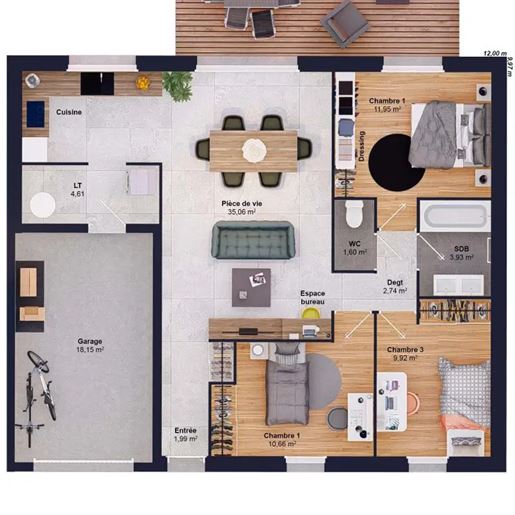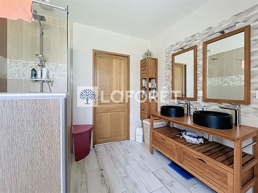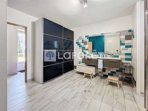Au premier étage, trois chambres spacieuses bénéficient toutes d’une vue panoramique orientée au sud. La suite parentale dispose d’une suite attenante généreuse et d’un dressing, tandis que la salle de bain familiale reflète la même qualité avec baignoire, douche séparée, toilettes, lavabo et bidet.