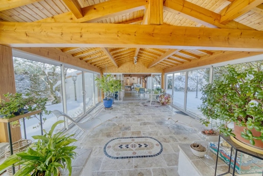 Dès votre arrivée, un hall d'entrée spacieux vous accueille, ouvrant sur un rez-de-chaussée généreux. Vous y découvrirez cinq chambres, dont deux dotées de cabinets de toilette, un bureau pratique et une lingerie avec de nombreux rangements. La salle de bain principale, équipée d'une baignoire, d'une douche et d'une double vasque, est complétée par des Wc séparés. La cuisine moderne, entièrement équipée, s'ouvre sur une salle à manger spacieuse et un salon convivial, agrémenté d'une cheminée insert et d'une climatisation réversible. Un petit salon intimiste et une terrasse couverte viennent parfaire cet espace de vie. Un espace bien-être avec piscine couverte, hammam, cuisine d'été et deux bassins à poissons vous invite à la détente.