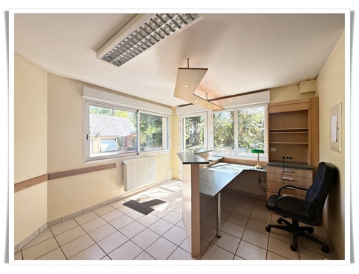En rez-de-jardin, vous découvrirez un espace de 70 m² anciennement utilisé pour une activité professionnelle. Ce volume, doté d'une entrée indépendante, peut être très facilement transformé en appartement autonome, en bureau pour profession libérale ou en gîte, offrant de nombreuses possibilités selon vos projets.
