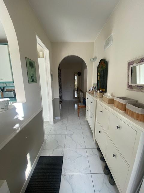 • Un séjour-salon traversant, baigné de lumière naturelle grâce à de grandes ouvertures, dispose d'une cheminée fonctionnelle pour des soirées douillettes. Les volumes impressionnent : plus de 3 mètres de hauteur sous plafond renforcent la sensation d'espace et d'élégance.