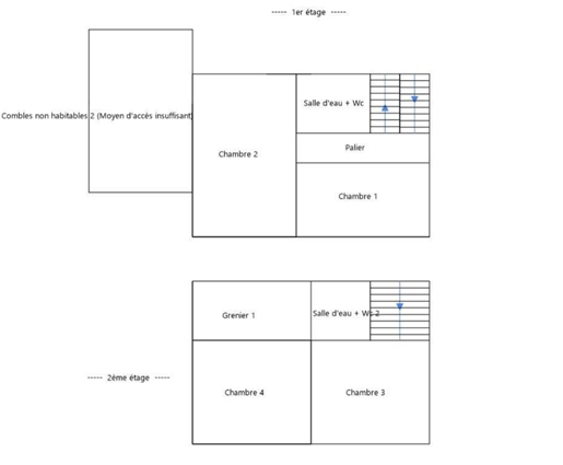 • Le second étage, dédié également à l'espace nuit, propose trois autres chambres, sous les combles aménagés, tout aussi spacieuses malgré les pentes de toit. Une salle d'eau complète ce niveau.