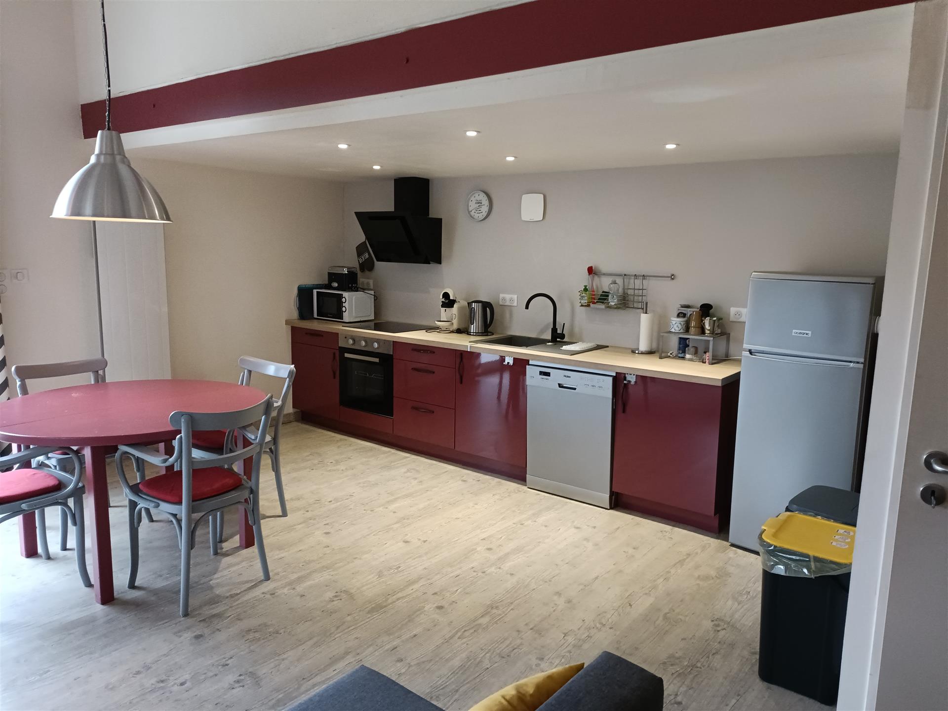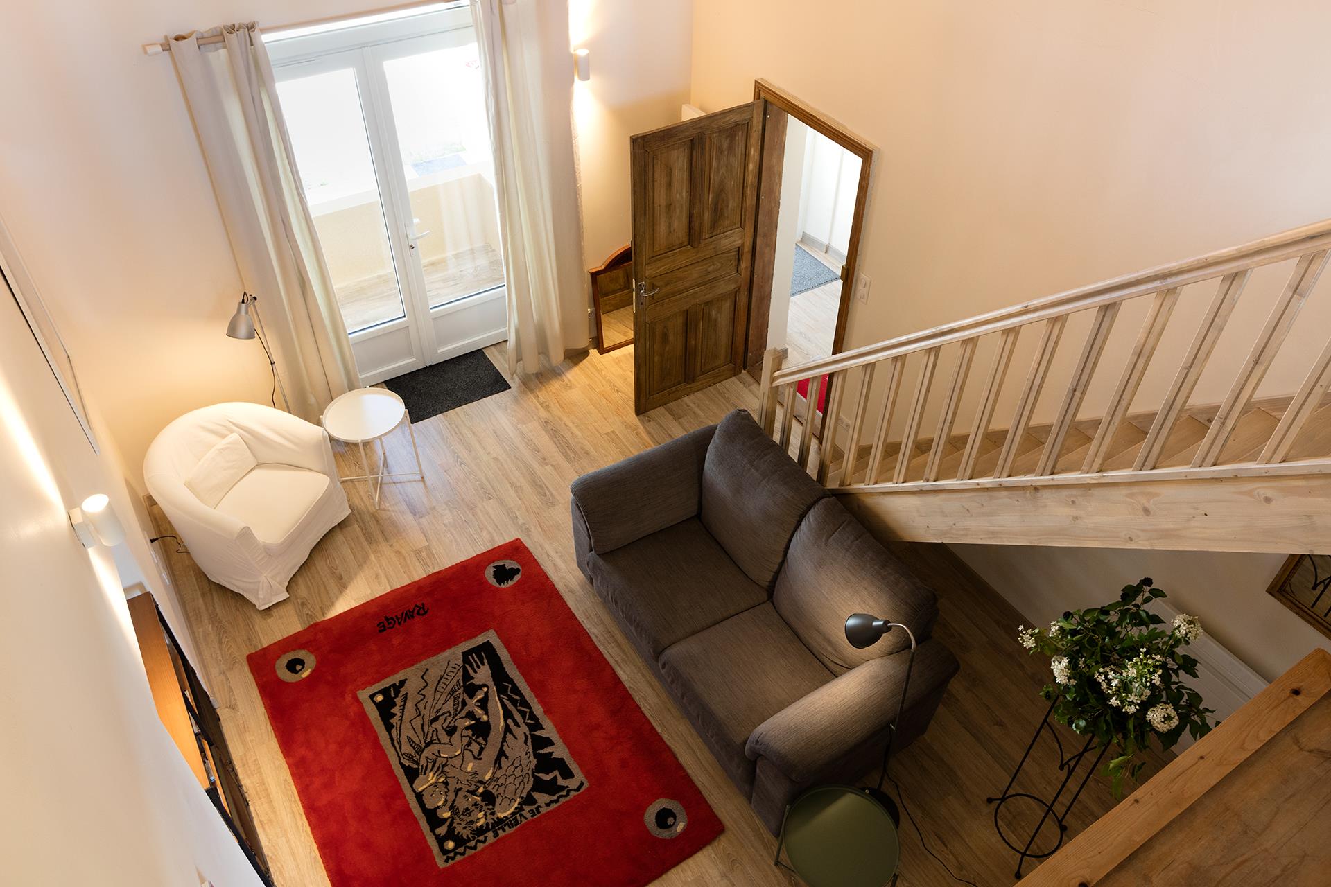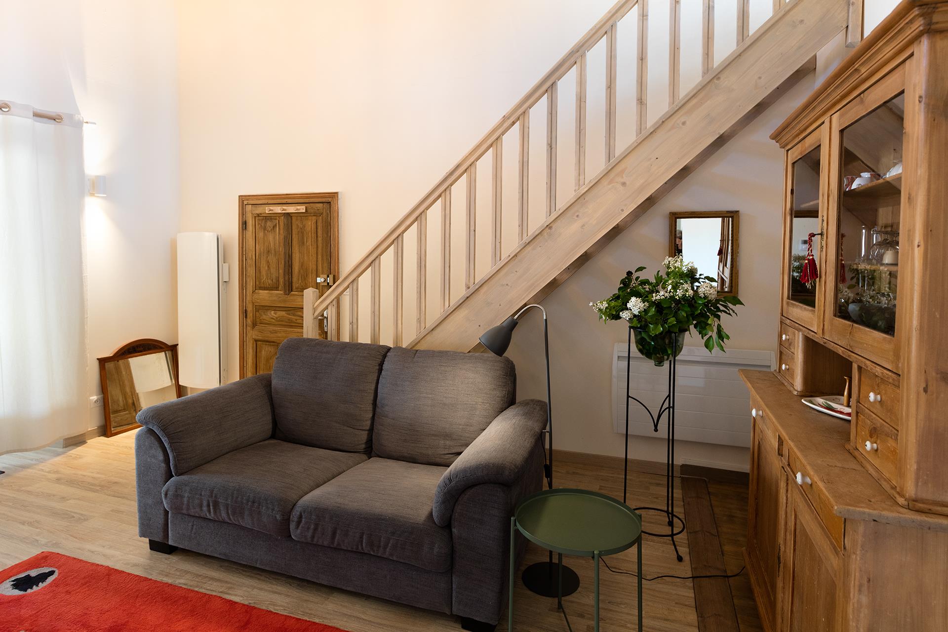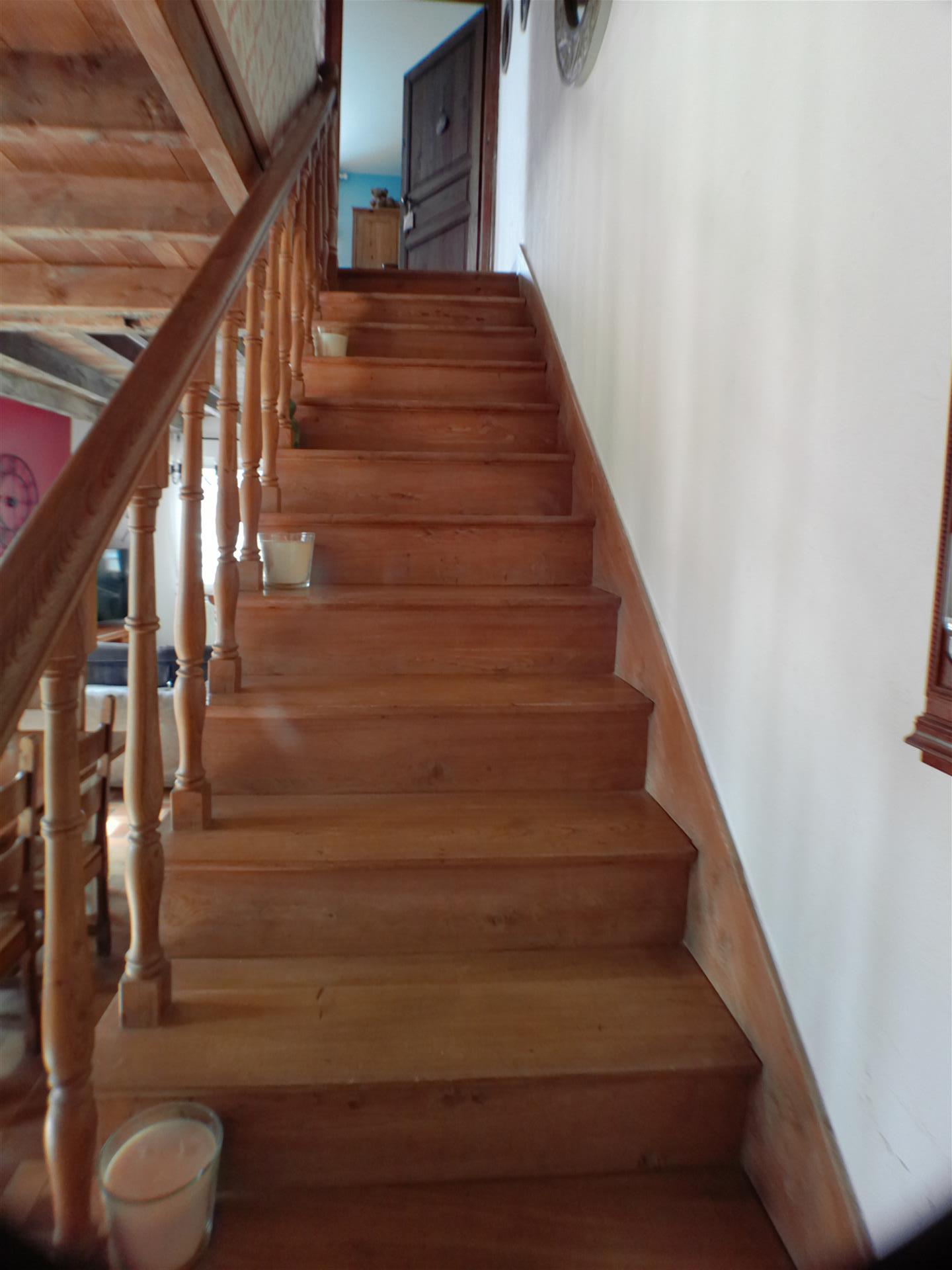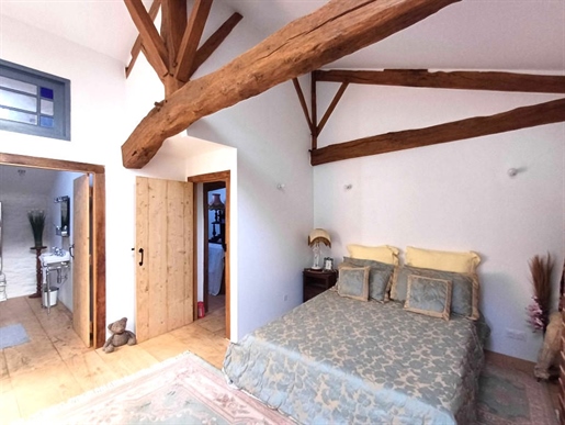 Au dernier niveau, une splendide mezzanine de plus de 27 m², mettant en valeur de superbes poutres apparentes, mène à une très grande chambre d’environ 28 m² — initialement deux chambres séparées, facilement redivisibles si besoin. Une nouvelle salle de douche, un bureau ainsi qu’un accès à un espace de combles faisant office de débarras complètent cet étage.