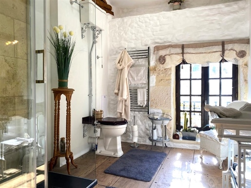 Nichée dans un environnement privilégié, à seulement quelques minutes de La Rochefoucauld et de toutes ses commodités, cette maison de caractère récemment rénovée offre environ 222 m² de prestations haut de gamme, implantée sur un terrain exceptionnel de plus de 7 000 m². Calme absolu, nature préservée, arbres fruitiers et une vue spectaculaire sur la vallée et le château de La Rochefoucauld en font un bien rare sur le marché.