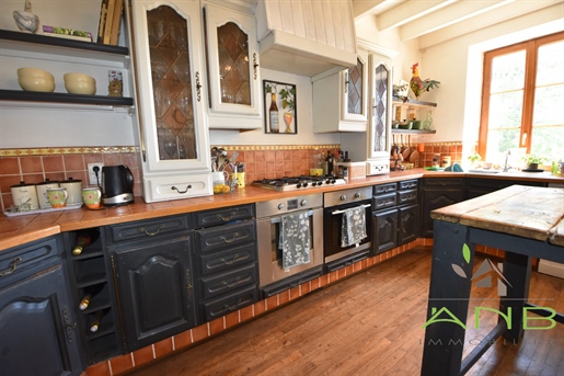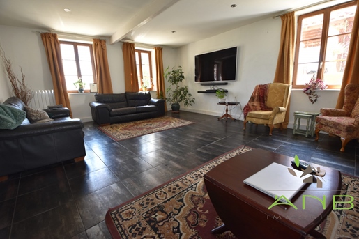 Au rez-de-chaussée, vous découvrirez une magnifique cuisine aménagée et équipée en granit, d’une superficie de plus de 32 m², dotée d’un poêle, offrant un véritable espace de vie convivial. Le grand séjour, chaleureux et exposé de manière optimale, bénéficie d’une belle hauteur sous plafond et d’un cachet indéniable. Une véranda de plus de 17 m², baignée de lumière, prolonge admirablement l’espace de vie et s’ouvre sur une grande terrasse récente, d’où la vue sur la vallée demeure tout simplement remarquable.