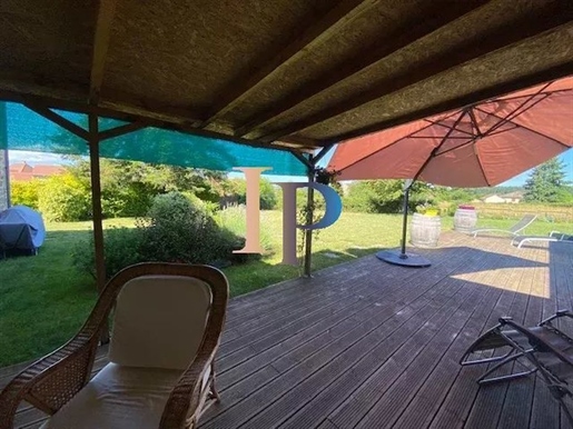 Côté rue, une terrasse offre un espace convivial, tandis qu’à l’arrière, un grand jardin clos avec réserve d’eau assure intimité et sérénité.