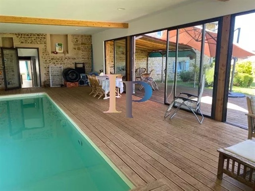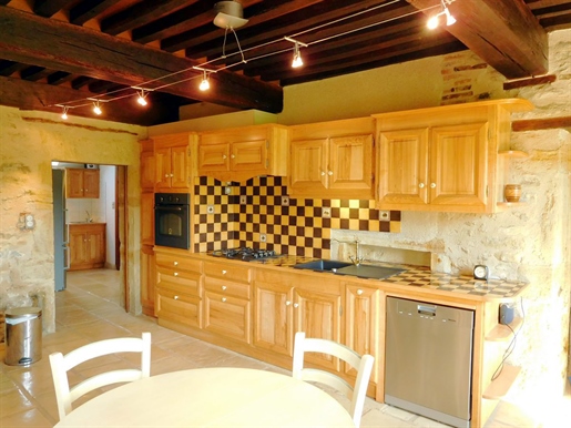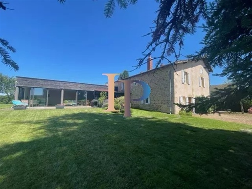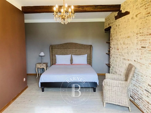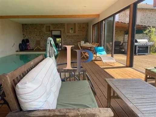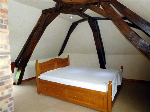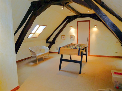 La maison principale (148 m2) s’ouvre sur une entrée menant à un vaste salon-séjour chaleureux, une cuisine familiale, un bureau et un wc. A l'étage, quatre chambres spacieuses, une salle de bain, une salle d'eau, un wc, un bureau et un grenier avec chien-assis complètent l'ensemble.