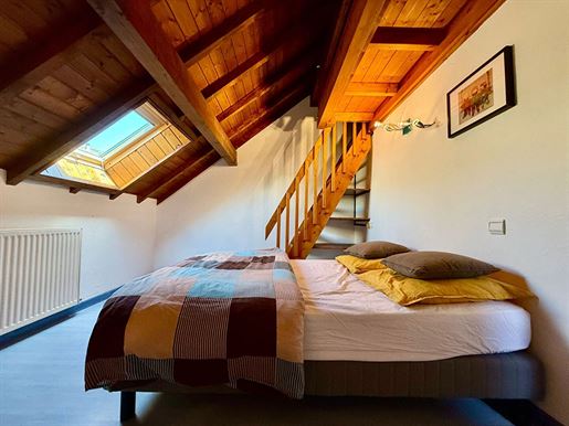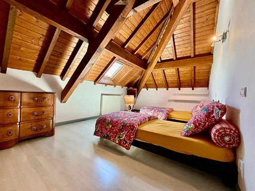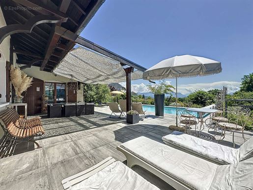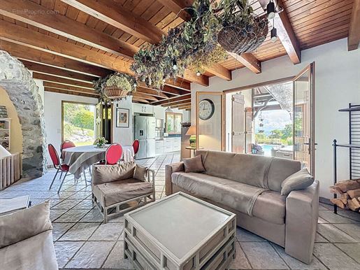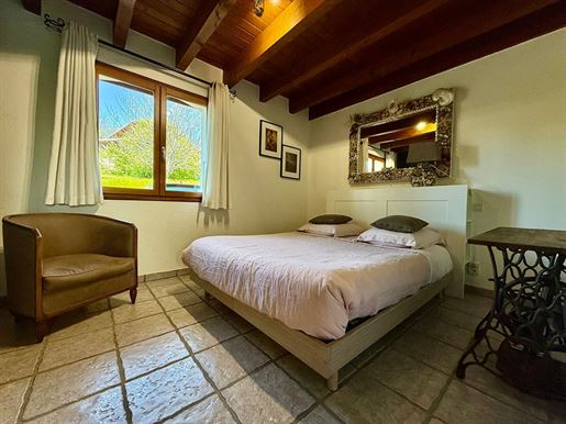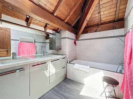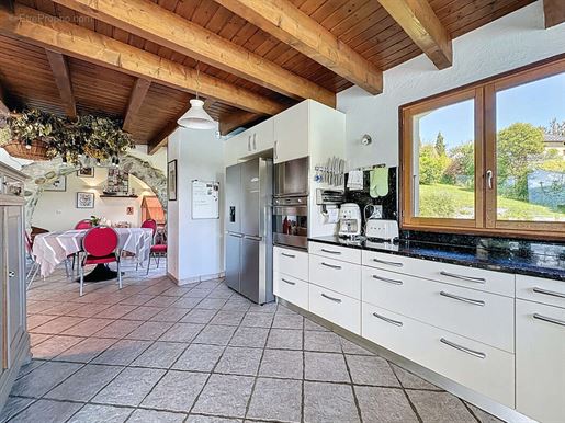 Située à Saint-Eusèbe, au calme, à proximité de l'école et de l'église, à 20 km d'Annecy, entre La Balme de Sillingy et Rumilly, une maison mitoyenne sur un côté, édifiée en 1892, sur un terrain en pente, de 1166 m2 environ, d'une surface habitable de 231,99 m2 et 285,68 m2 utile, exposée sud-ouest, elle se compose ainsi :