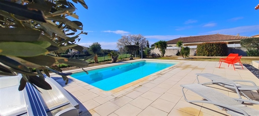 Cette villa de plain-pied, construite en 2020 ,dans un style traditionnel, profite d'un environnement résidentiel calme en sortie de village. Elle offre 127 m² habitables, lumineux et confortables, sur un terrain paysager de 801 m² agrémenté d'une belle piscine maçonnée et de vues dégagées sur la campagne.